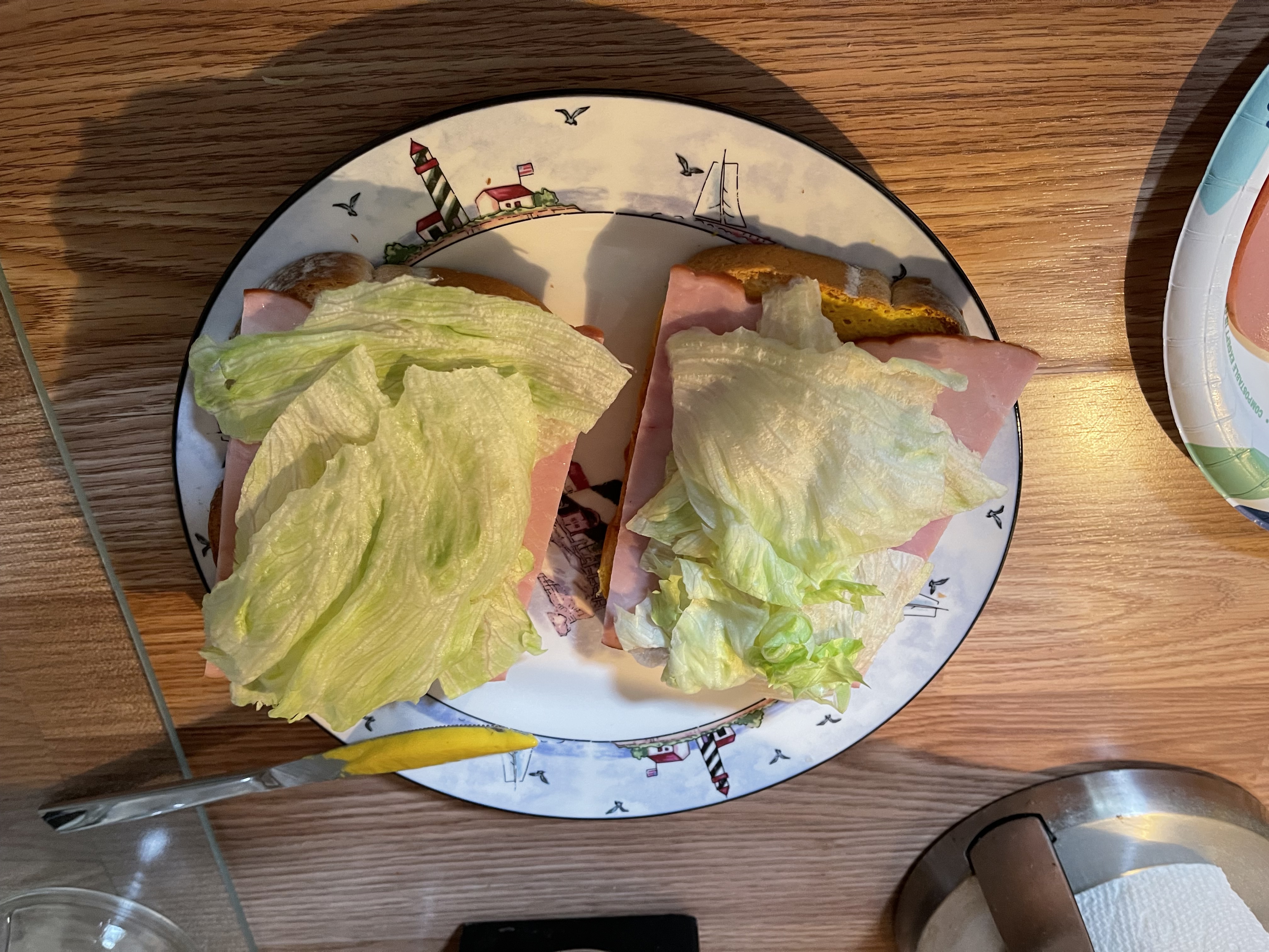 Then the last of the bread and the cutting of the sandwiches. I like my slice on an angle.