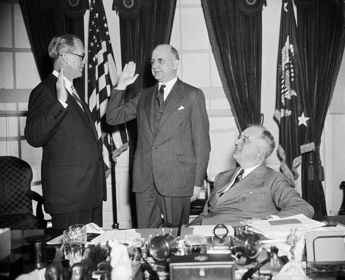 In 1938, Joseph Kennedy Sr., the father of future President John F. Kennedy, was sworn in as U.S. Ambassador to the Court of St. James’s in the Oval Office as President Franklin Roosevelt looked on.