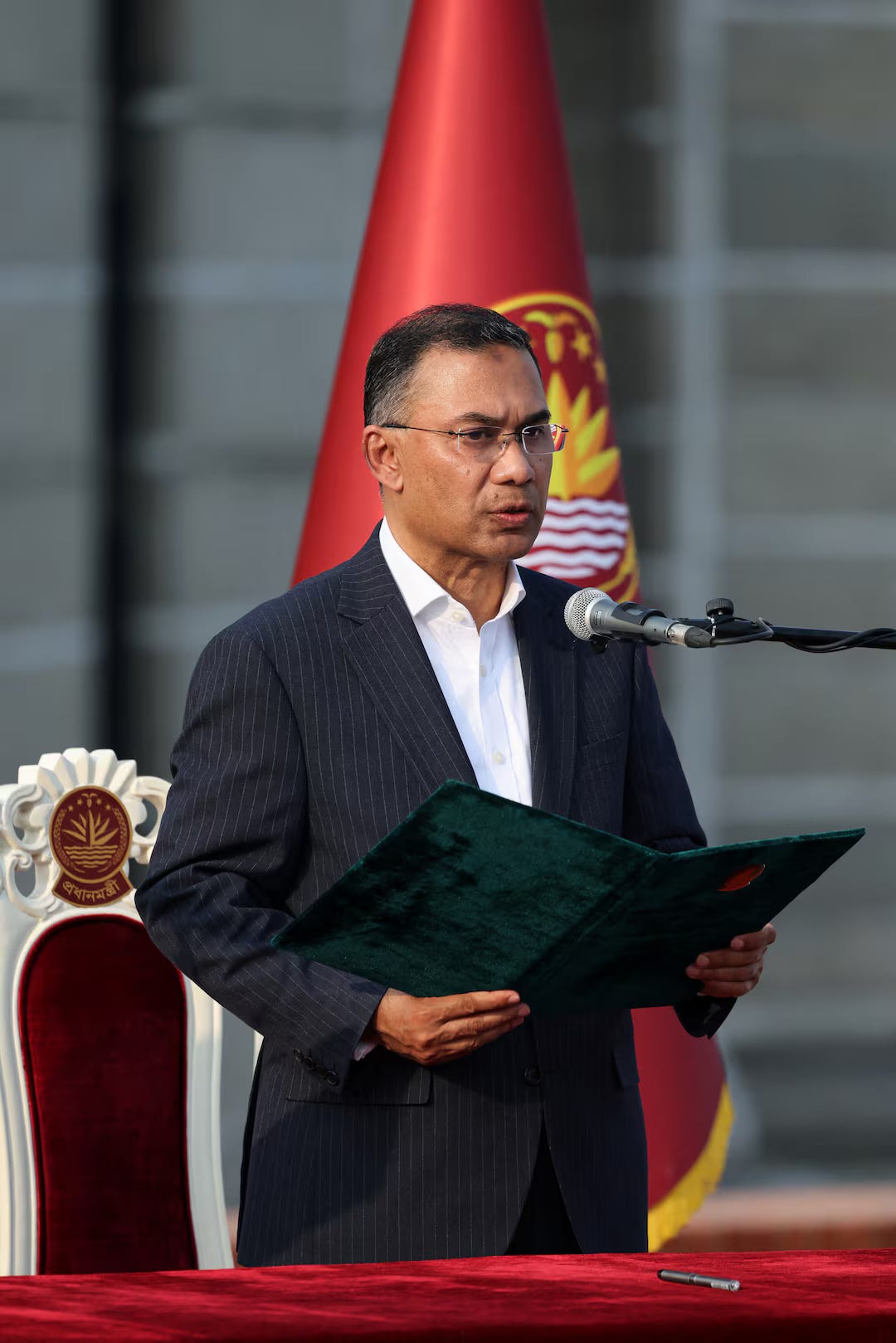 -Bangladesh Nationalist Party (BNP) leader Tarique Rahman was sworn in as prime minister yesterday, capping two years of political instability in the South Asian nation.