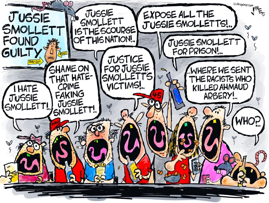 Quick! Pop Quiz: Name the guy who a Chicago jury found guilty yesterday of faking a hate crime. Now, name the three men found guilty of killing Ahmaud Arbery in Georgia.