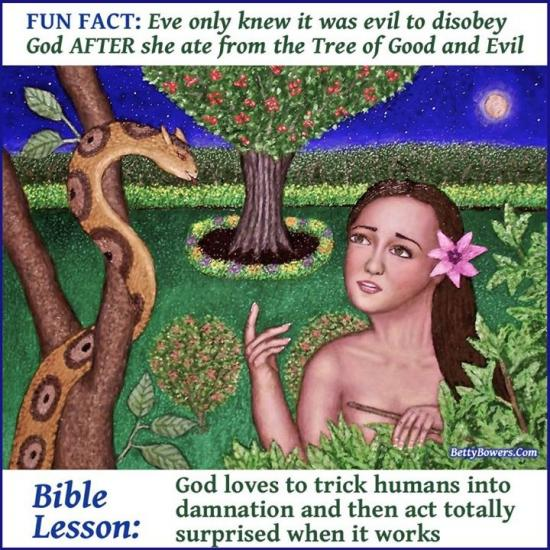 We never heard Eve’s testimony about this. Adam readily blames his wife. How do we know she didn’t just whip an apple at Adam’s head because he was being a chauvinist pig, unlike the pigs, who were too busy building homes of straw, sticks & bricks to engage in any kind of sexist behavior?