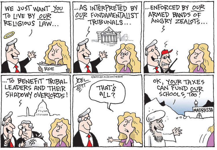 The not-so-quiet part about when Bobble-head says “church” is that she means Christian church. They’re fine with religious privilege, as long as it’s the right religion.