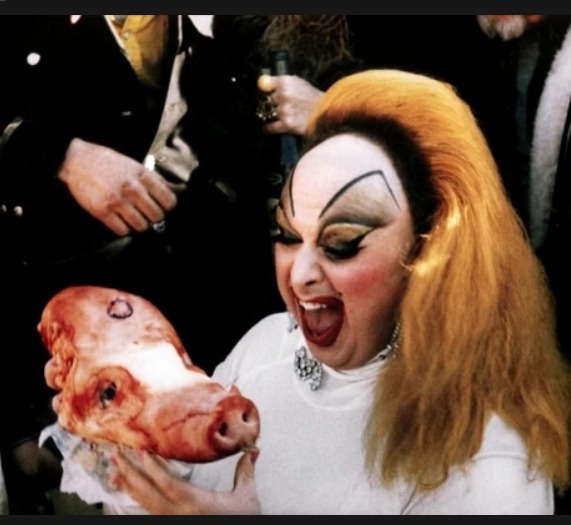 I don’t know if the bigots that did this to a person’s home were driven by religious bigotry against the almost nude showing of the one woman’s boobs or the fact that a fully clothed Divine was also there, she was in a famous movie Hairspray and is a man in drag. I have no idea of their pronouns, and I apologize if I wrongly gendered them.