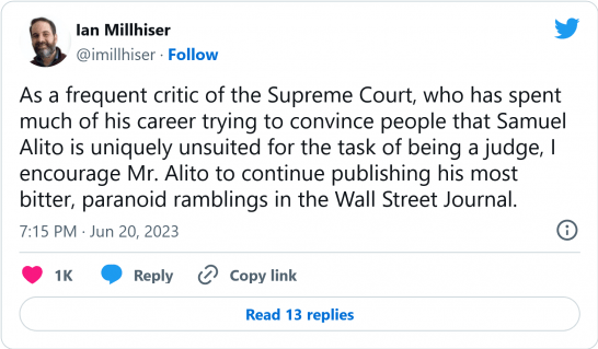 Republicans are attempting to do the same thing to our justice system that they did with the media. They cried media bias again and again until it got to the point they started received special treatment. It became unbalanced in favor of them. Now, if Republicans commit crimes the FBI won’t investigate them. That whole fake elector scheme … the FBI won’t do shit about it. If it was Democrats, they would have been charged on day one.
