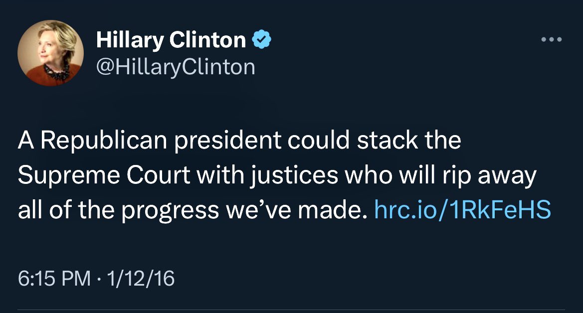 By the time Hillary ran for office in 2016 the court was already on the road to being captured by the Republicans AND had been corrupt for decades already.