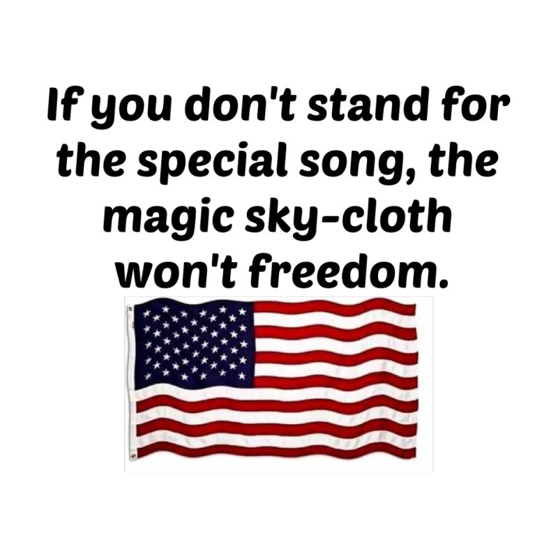 What is with the forced patriotism of the right? They want no independent thought, just everyone marching in lockstep. It doesn’t install a love of country to force someone to say the Pledge of Allegiance, nor by making them sing a song, just like forced morning prayers never made kids religious. If it is illegal to force kids to stand and say the pledge, it has to also be illegal to make them stand and sing the national anthem. Notice the other things this guy wants, no same-sex marriages and no trans people. Is this because he is a fundamentalist religious person? A fundie? Is this what he thinks is patriotic because in church everyone is required to do group think and never question the leader? Hugs. Scottie