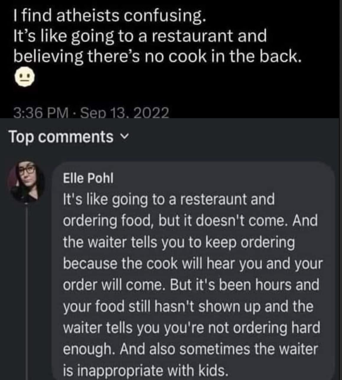 This maybe one of his most important videos about Christians not forcing their beliefs on others. When I was getting ready for my left hip replacement the PA who was processing me was clearly Christian. She wore crosses and all the ornaments of her faith. When we got to my stay in the hospital she said “And of course you will want a visit from the Chaplin, what Christian denomination would you prefer”. Absolutely none I said. She wouldn’t accept it but then kept asking if I was willing to have this sect / denomination visit. I was getting pissed. Ron stepped in and told her if any clergy enters that room, Scottie will claw his way out of the bed to drive them into the hallway … No way is anyone of any religion welcome. She was upset and angry. She got her revenge. She failed to send my pain medication requirements to the hospital so I went from early afternoon to midnight with no pain medication after surgery, and it was not the fault of the nurses. They called her and the doctor, then just kept called him. Finally he answered at midnight and was so angry. WHY ARE YOU CALLING ME, MY PA HANDLES THESE CALLS. They told them they couldn’t get in touch with her, she was not answering and I was in horrible pain from serious surgery. He told them to put me on my home medications which was the plan as my pain doctors were handling it, so soon I got morphine and other drugs. She got her revenge, no hate like Christian spurned. When I went for my follow up I learned she had been fired. I hope my 10 hours of horrible pain was worth it to her.