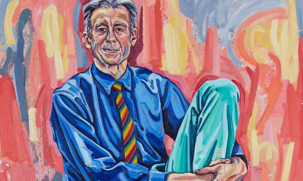 The painting by Sarah Jane Moon shows Tatchell in a casual pose, seated with his hands clasping his left calf. The 72-year-old activist is sporting a rainbow tie to celebrate almost six decades of fighting for LGBTQ+ rights.