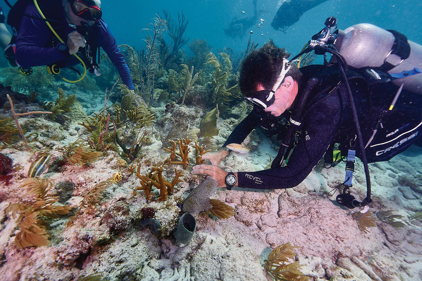“When I met Dr. Smith, I would pepper her with questions — she couldn’t walk in my store and leave in quick fashion,” Goldberg says. Their discussions eventually moved from the dive shop to a beer garden at The Florida Keys Brewing Company. “We would sit and chat, and I kept saying to her, I’ve got an idea to empower recreational divers so that they can become citizen scientists — not only because they want to be part of the solution, but because they need to be a part of the solution. That’s the largest potential boots-on-the-ground army that can enact so much of what we do.”