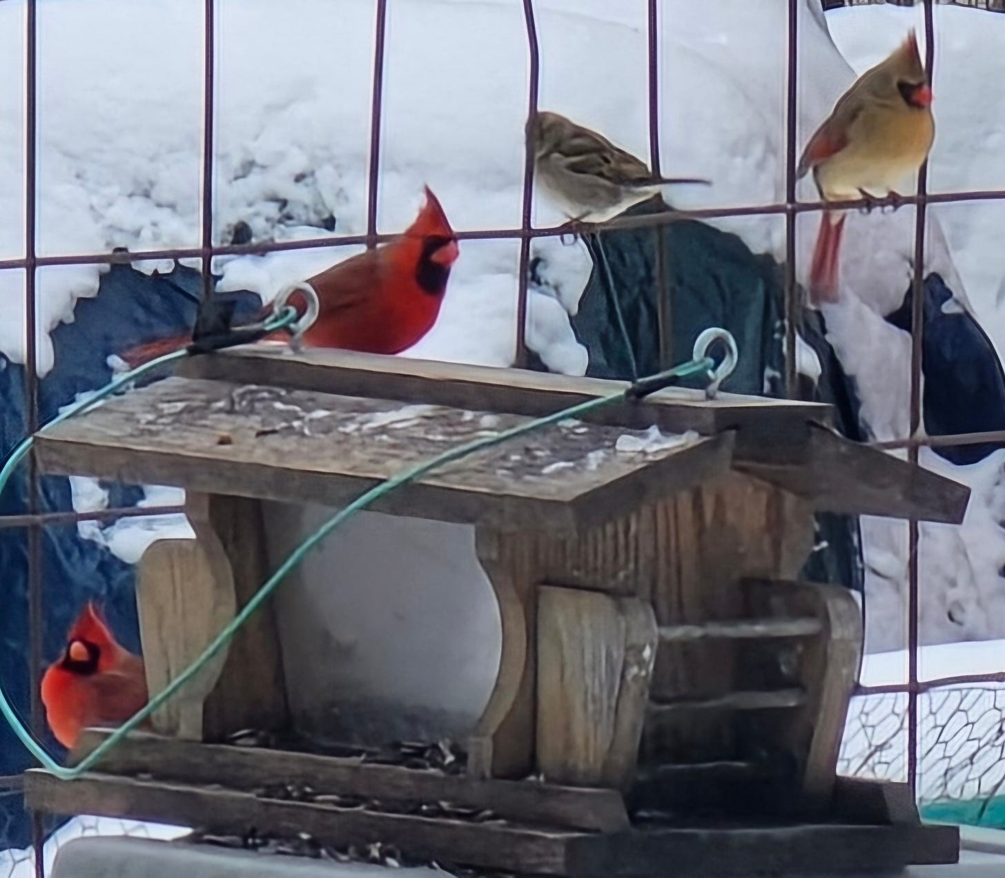 I was really happy to take these photographs today! I filled the feeders yesterday. By this morning the word had spread! Places full of birds. I’m out of bird food now. It’ll be a week before I can get to Costco. I was hoping the Cardinals would show up when I put the food out yesterday! I love the one in the lower left that’s all puffed up.