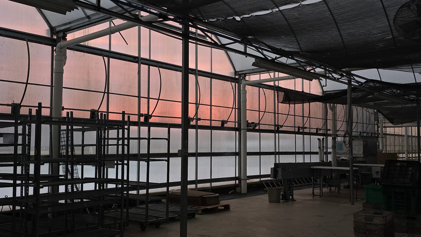 I had the greenhouse to myself this weekend. It was nice! It was snowing pretty hard at sunrise on Saturday. Today was mostly clear when the sun came up. A few clouds to shed some color.