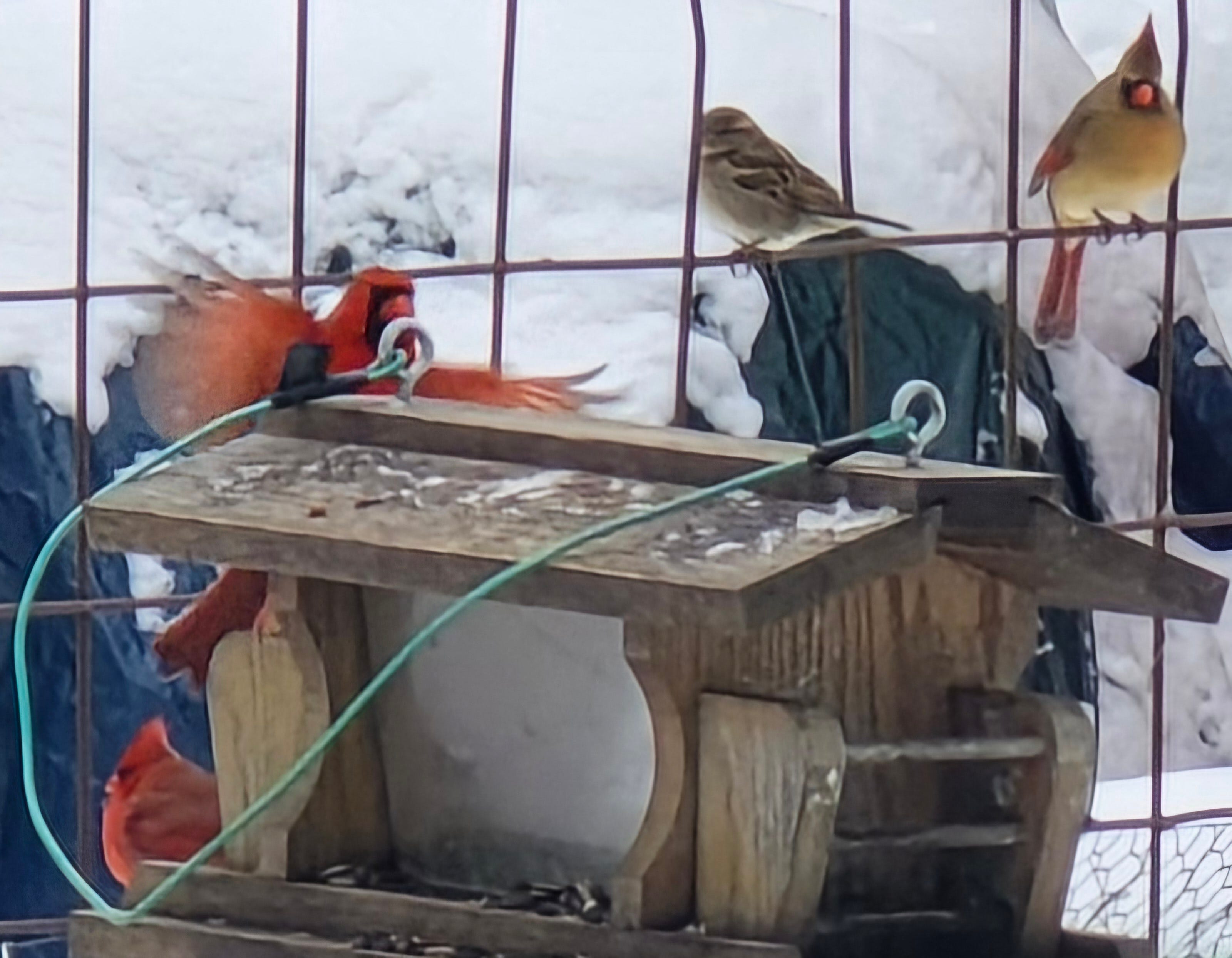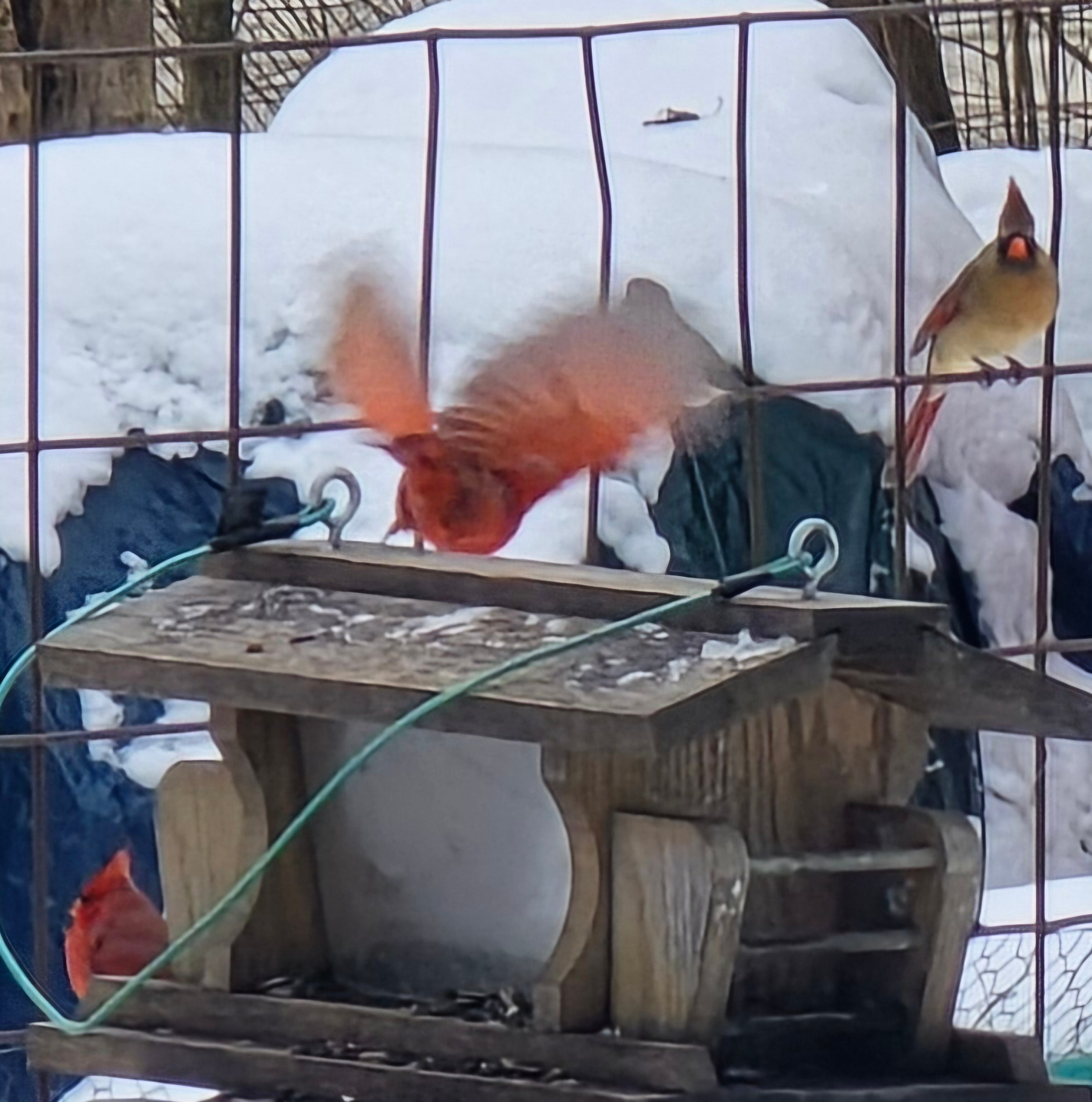 I was really happy to take these photographs today! I filled the feeders yesterday. By this morning the word had spread! Places full of birds. I’m out of bird food now. It’ll be a week before I can get to Costco. I was hoping the Cardinals would show up when I put the food out yesterday! I love the one in the lower left that’s all puffed up.