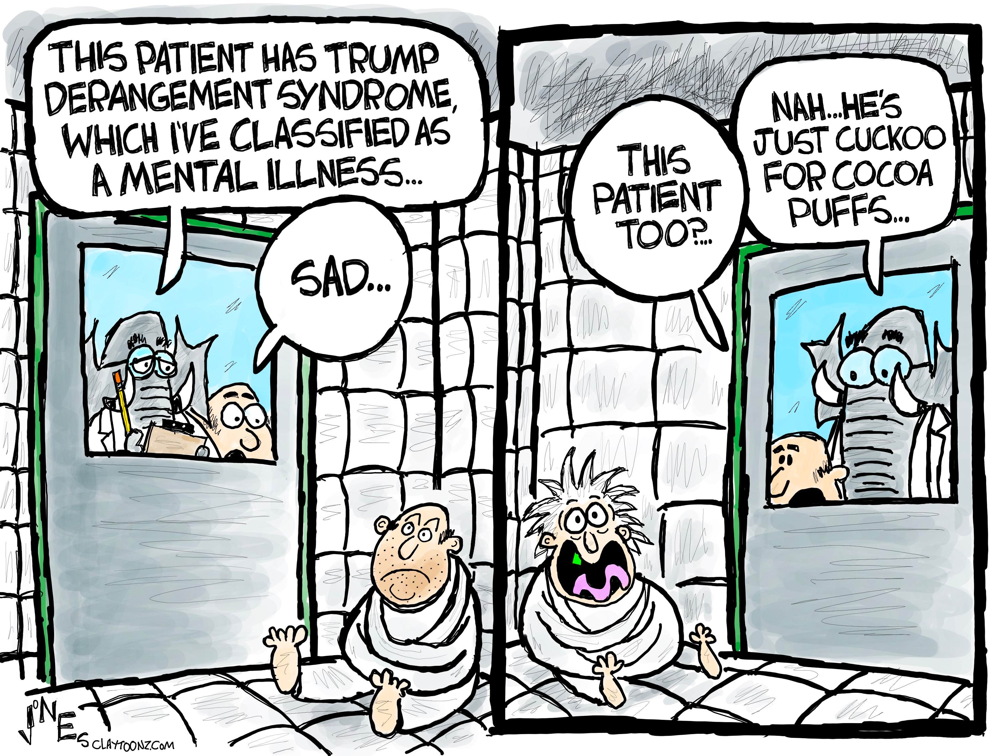 Let’s make one thing clear. Trump Derangement Syndrome, or TDS if you prefer, is not a thing. It’s not like it’s ever been featured in the New England Journal of Medicine or been studied at the Mayo Clinic. It’s about as legitimate a medical condition as rock-and-roll pneumonia, a bad case of loving you, or being cuckoo for Cocoa Puffs. Sure, Cocoa Puffs is delicious, but it doesn’t make people cuckoo any more than Trix is exclusively for kids and not weird, stalkery creeper rabbits. I always felt like the cereal was just a cover for what that rabbit was really going after.