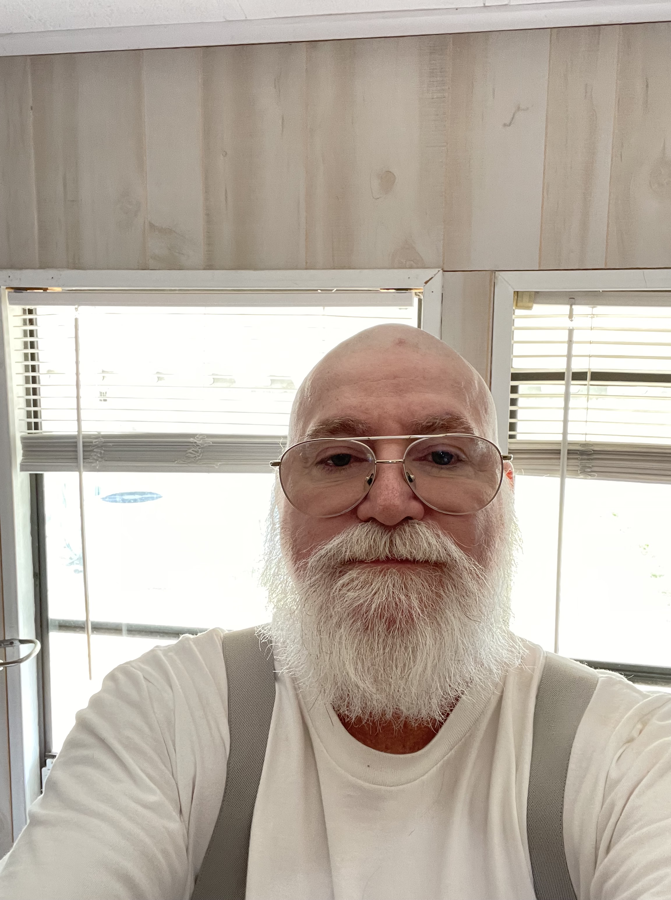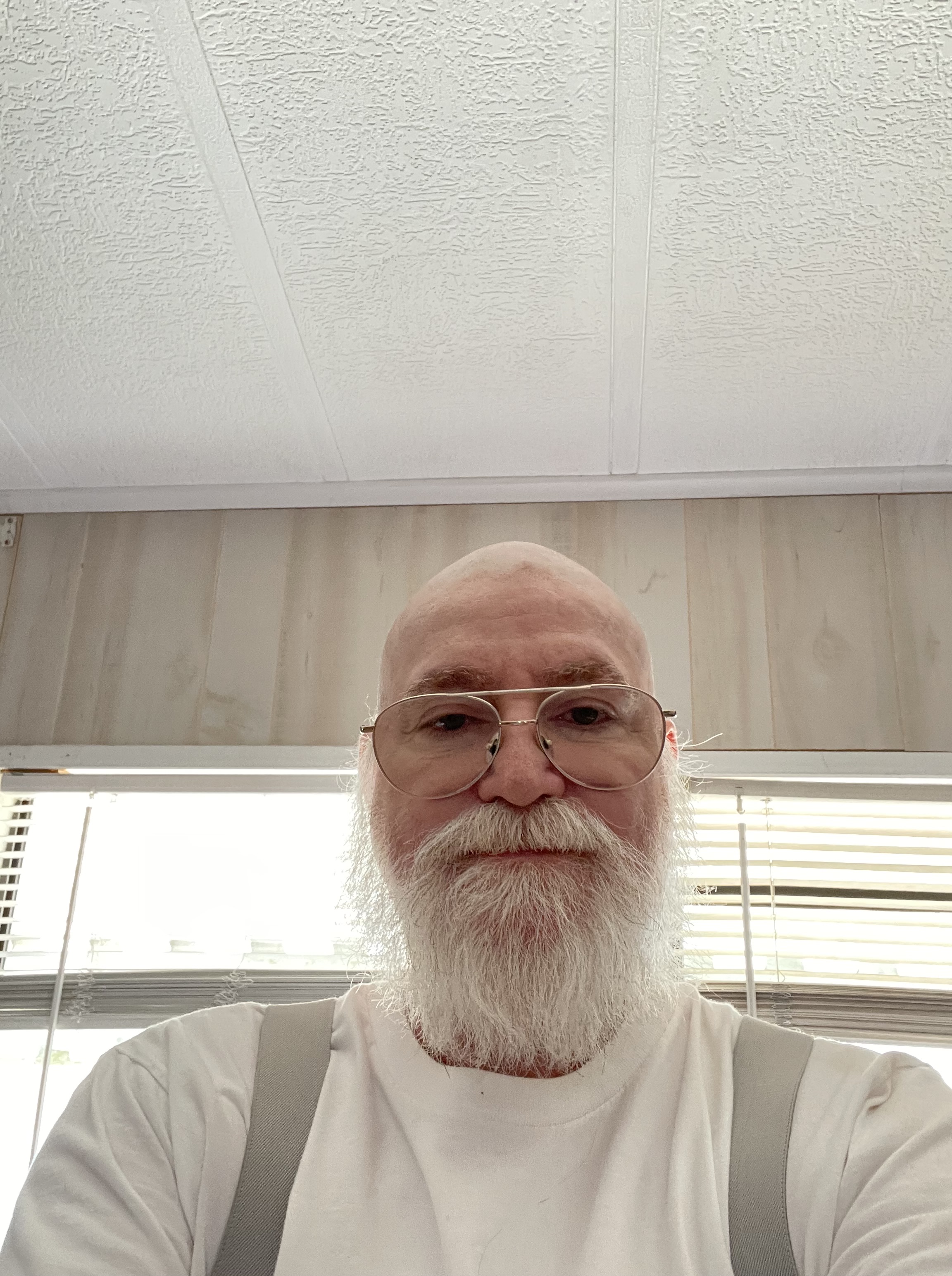 Now the pictures below are not as closely shaved as I want it and will get it to.Β Ron kept taking small amounts off at a time hoping I would say no please stop.Β But I got frustrated with this approach and by the time he got to the scalp the damn clippers were so hot they were burning my skin.Β Then he tried to shave it with a razor but it was too long to get as close as I wanted to a bald head.Β But my scalp was getting very irritated by then.Β