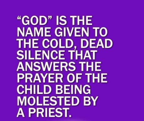 And by me as I was being abused emotionally, physically, and sexual. I was going to the SDA church and told god would protect me if I prayed hard enough. He did not, no matter how hard I prayed. I guess I was not worthy. The Christian apologist say that the right of free will for the abuser was more important than the safety of the abused child. Hugs