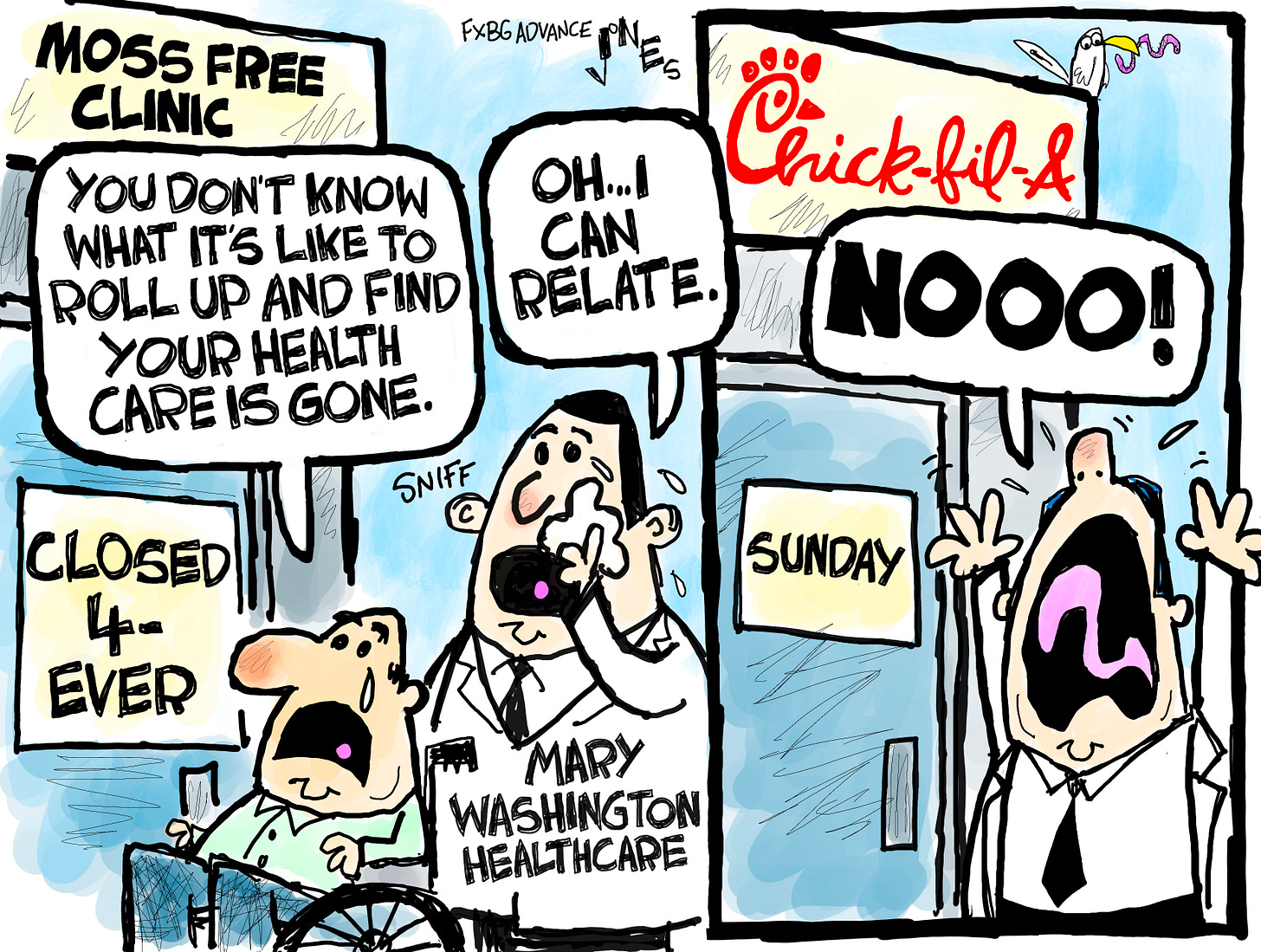 Fredericksburg has lost Moss Free Clinic, and very important, and the only source for many for healthcare.
