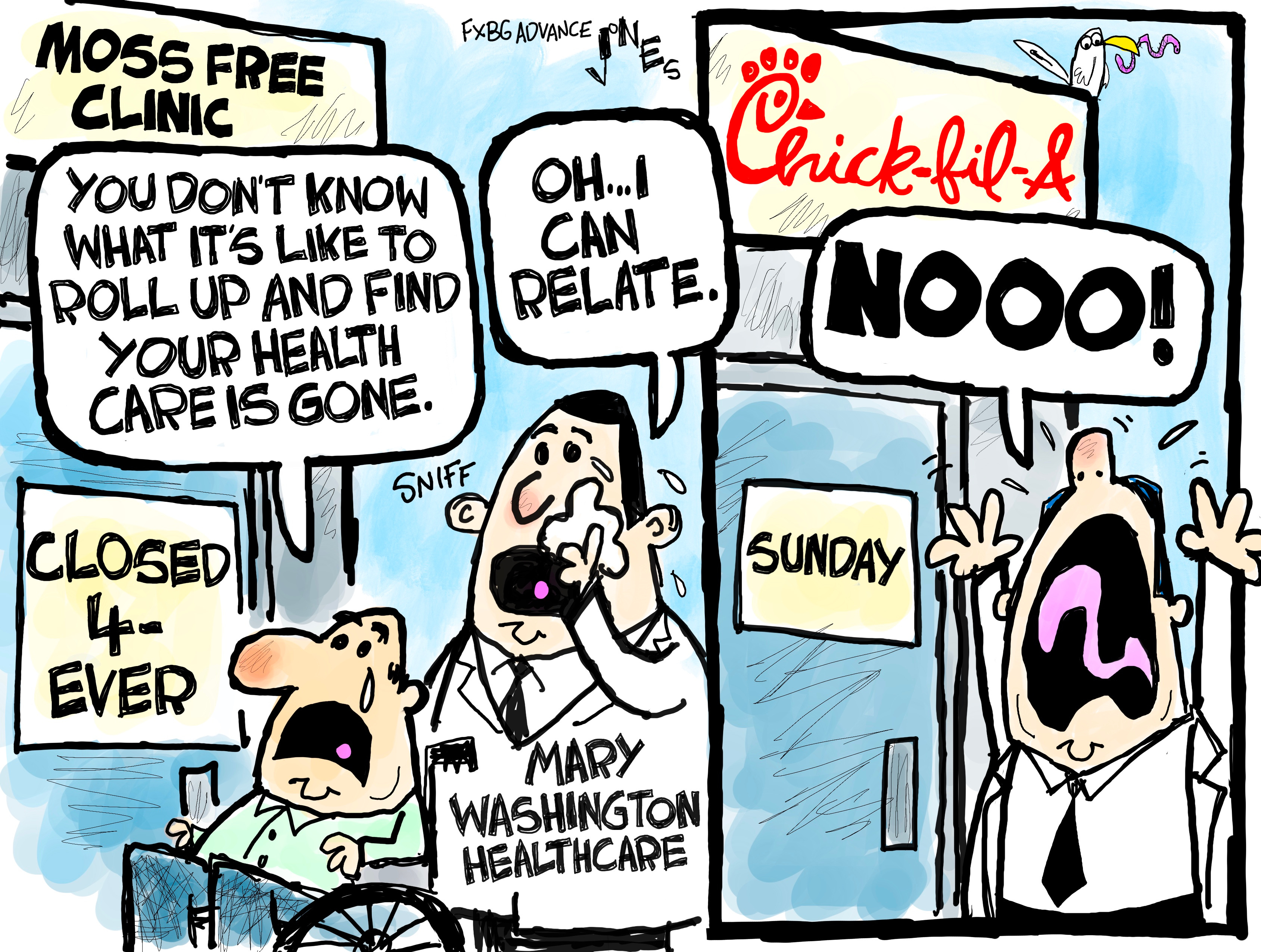 I’m sorry. I don’t know if it will help, but I’ve seen such clinics close up in Wichita, then open again a few years older and wiser, and helping people again. Maybe F’burg’s clinicians will find a way!
