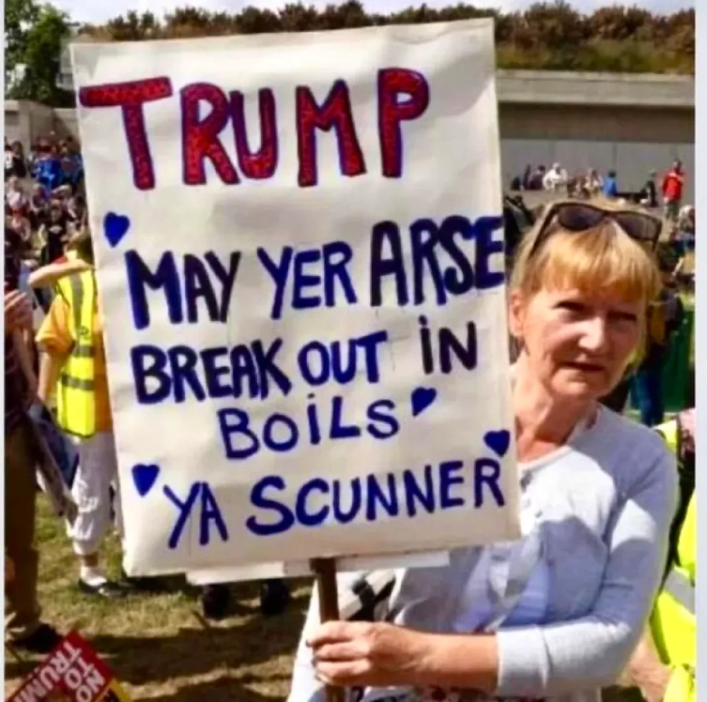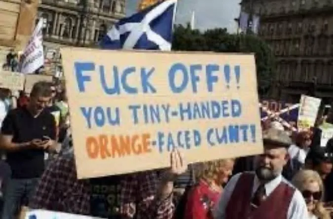 Preznit Fuckwit gets the Scottish welcome he deserves by Jeff Tiedrich