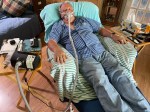 As Ron was up all night he is very tired. He brought his C-Pap out to the living room. At night we will run the cords powering the living room to the bedroom to power his mask and the A/c. We are waiting for a call from the vet to bring the cat in for a bolus of fluid. He has not eaten in days nor drank water. She gave us medication to make him eat and some stuff to get his stomach going. Hugs