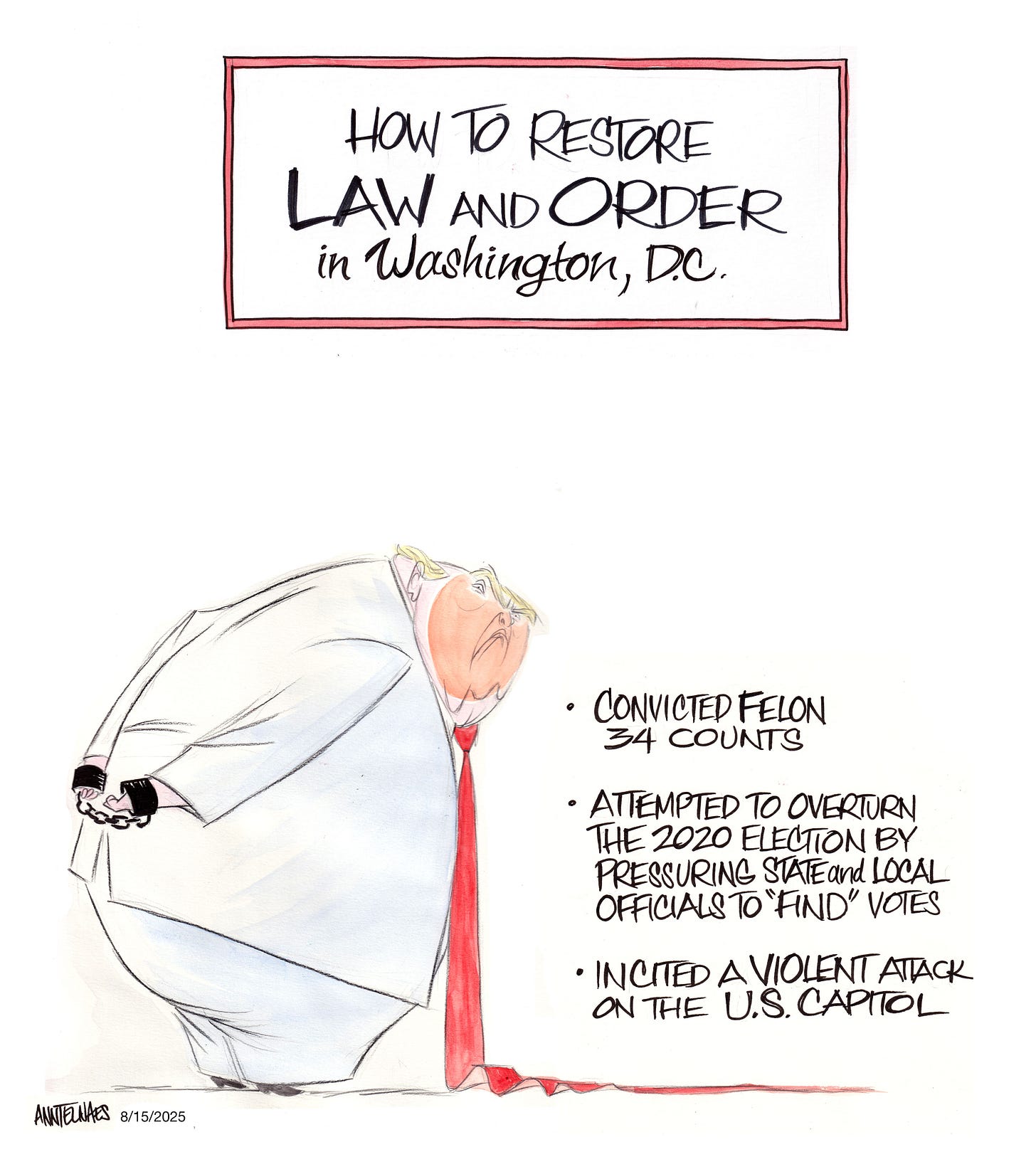 The news media keep referring to Trump’s law & order agenda, which sets off my irony antenna. How about also mentioning in this coverage that Trump is a convicted felon and seditious ex-president who violated his sacred oath of office?