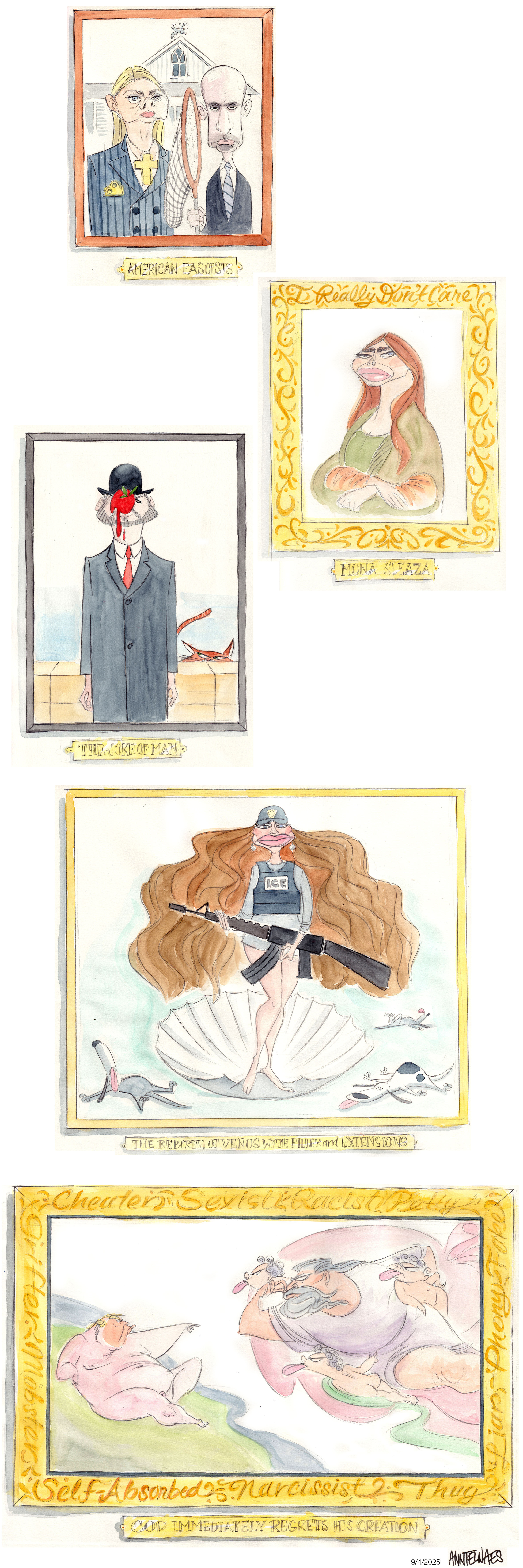 WASHINGTON—Denouncing the Smithsonian Institution’s art collection for being “toxically woke”, Donald J. Trump announced today that he is replacing it with newly commissioned works depicting himself and members of his inner circle: Melania Trump, Pam Bondi, Stephen Miller, JD Vance, and Kristi Noem.