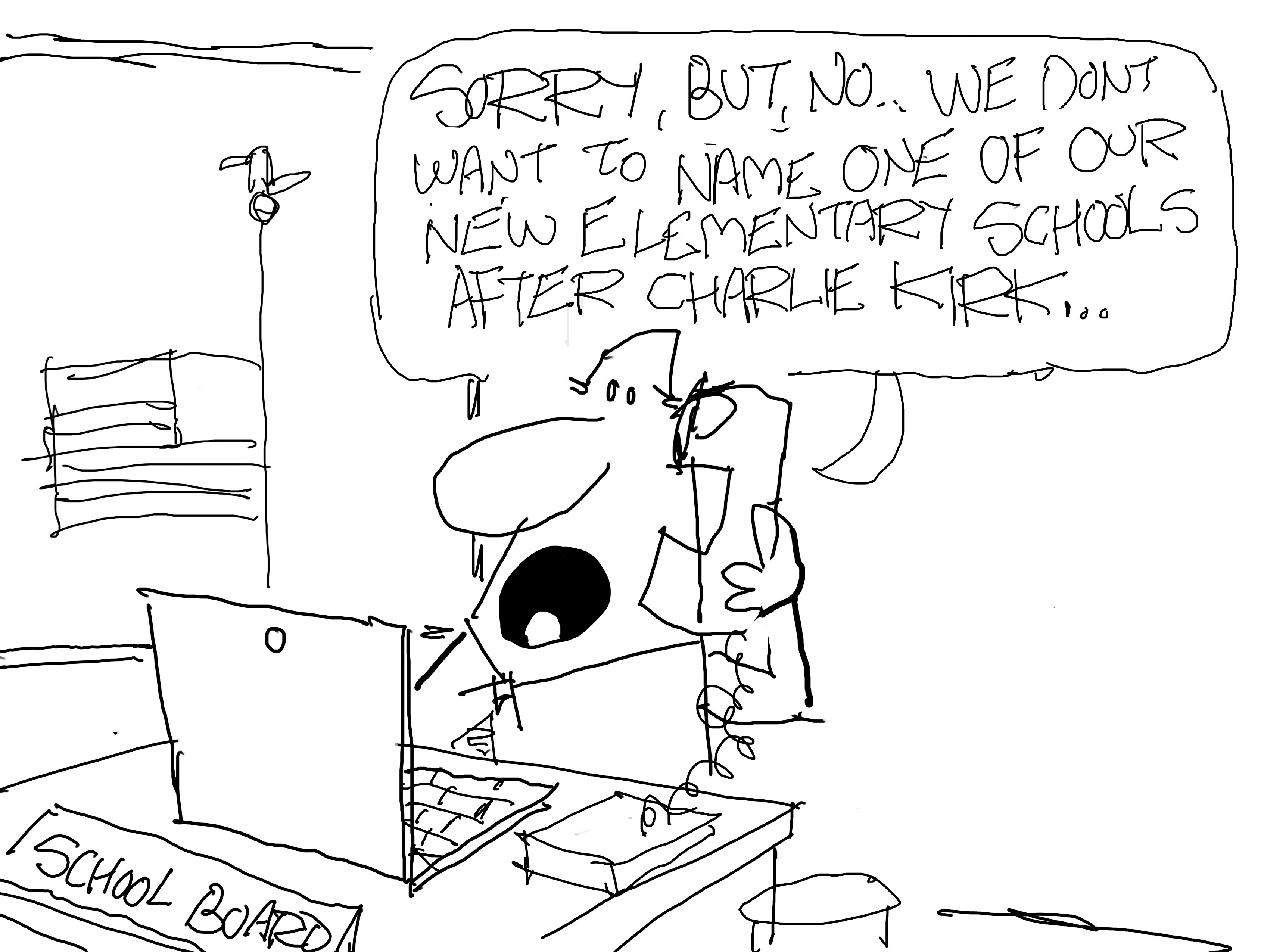 You’re not going to get a new cartoon from me until Sunday. Say what? I’m ahead of schedule with last night’s Charlie Kirk cartoon, dated for September 19. But you will get new content here daily.