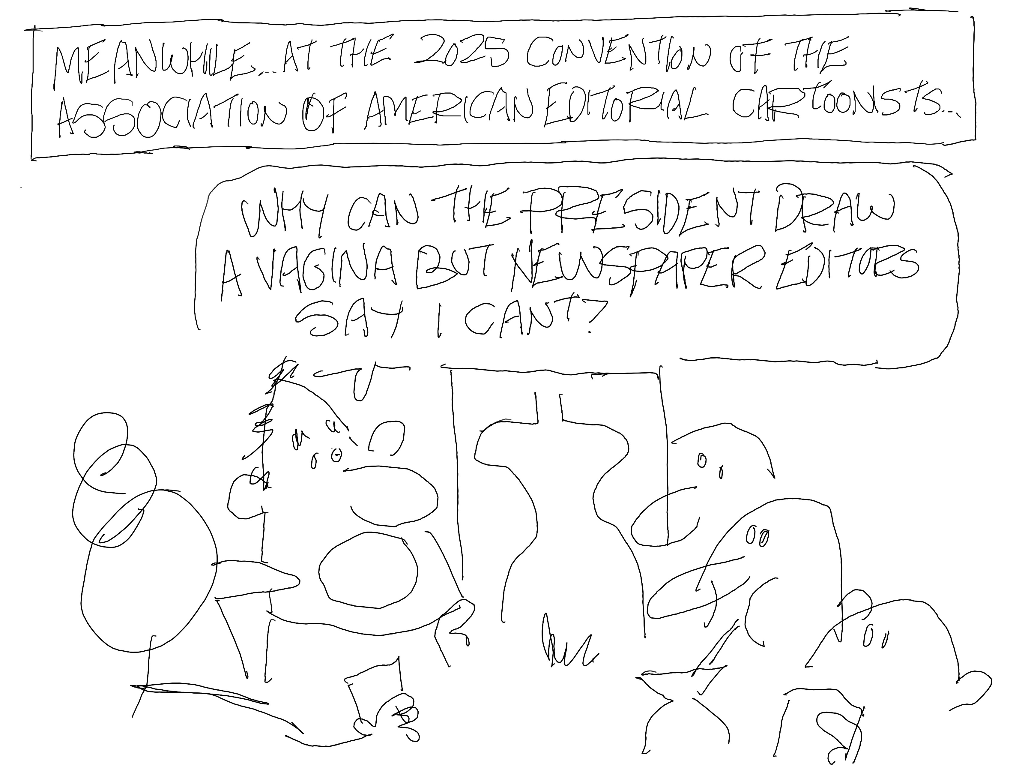 I drew this on September 9, it became a real cartoon, and it got a lot of comments. A LOT of comments. I can’t wait for it to land on GoComics, which will be tomorrow.