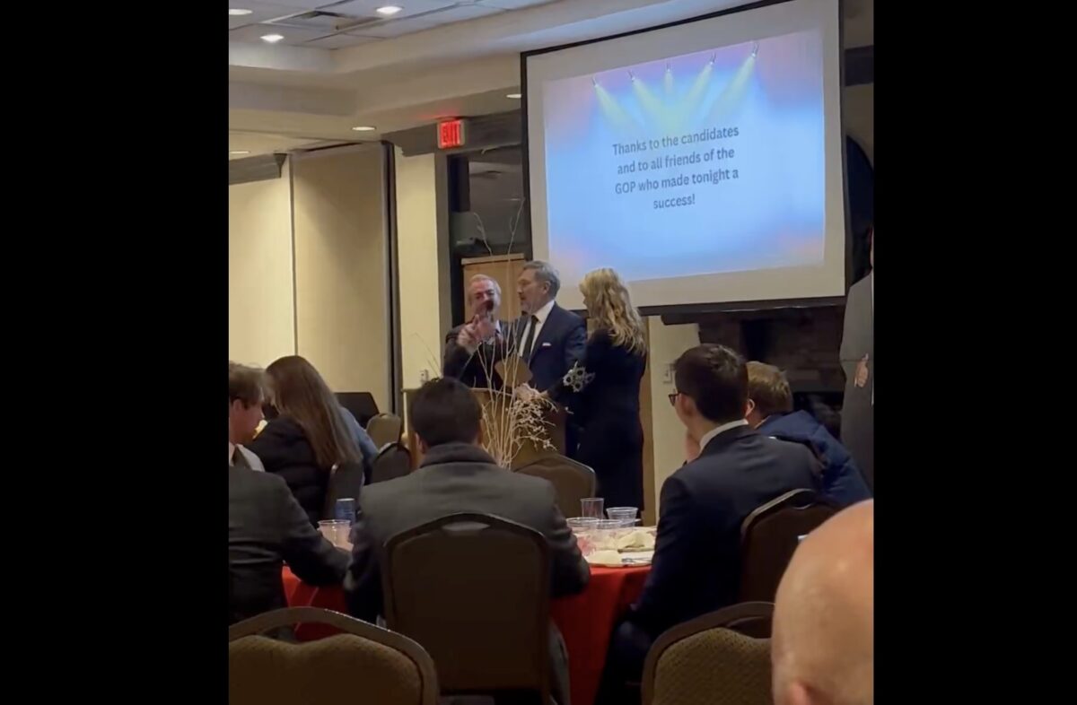 Rep. Thomas Massie (R-KY) had a microphone snatched right out of his hand Friday night as he spoke at the Oldham County, KY, Republican Party’s Lincoln Day Dinner.