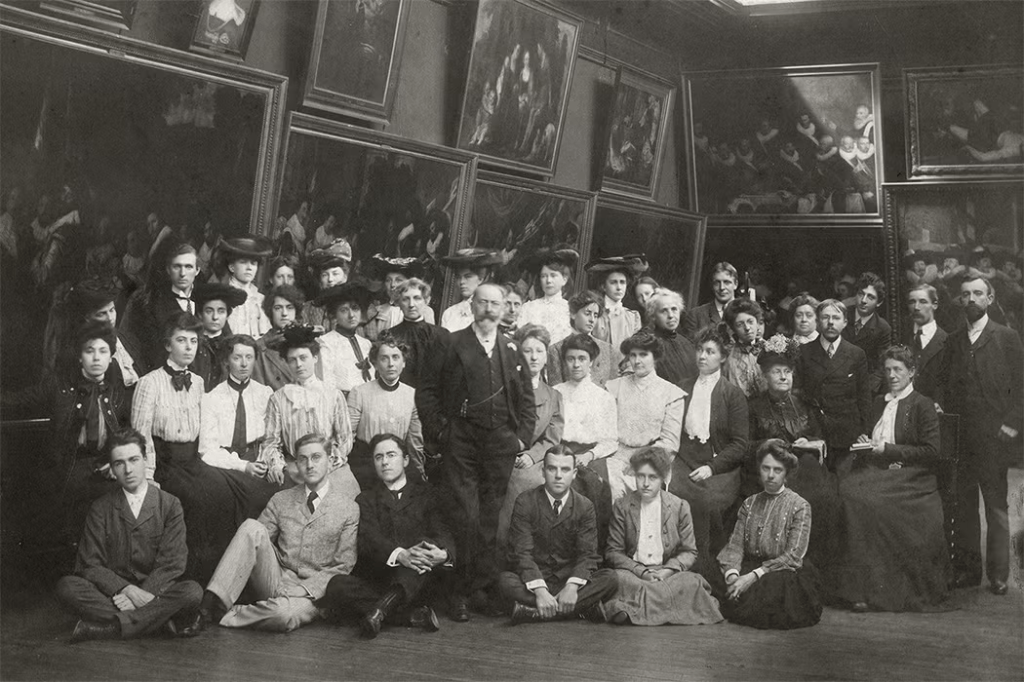 William Merritt Chase with Parsons School of Design students via Wikimedia Commons