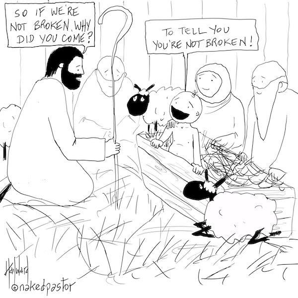 | Let’s make this one short and sweet. I agree with Cohen. I also agree with Sinéad O’Connor’s therapist, who told her the whole point of therapy was to help her realize she didn’t need therapy. The same with Gabor Maté, who said that I am not broken, but just wounded. Underneath the wounds and pain is wholeness. A wholeness already there, just waiting to be embraced. These all ring true to me. When I share cartoons like the one here, The Best Healing, I get some positive comments, but also a lot of angry and offended ones. And I understand why. I, too, was raised to believe that I was born a sinner, deeply broken and flawed and depraved, in need of a saviour to redeem me. The whole theological system and enterprise is founded upon the assertion that I am a vile sinner who needs to be saved by a divine being.I know how difficult it is to walk away from this belief, because it’s not just a belief, but a whole worldview, an entire paradigm, complete with its religion, institution, scriptures, and priests. It’s like leaving the universe to start over in a new one. One that says you’re okay. It’s a radical step, and maybe you have taken it. I’m proud of you for that. |