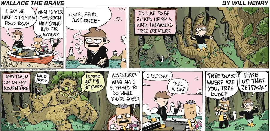 Still Workin’ On My Sunday Comics … But I love this one, and want you all to have it, too! https://www.gocomics.com/wallace-the-brave/2026/04/12 Share this: Share on X (Opens in new window) X Share on Facebook (Opens in new window) Facebook More Print (Opens in new window) Print Share on Reddit (Opens in new window) Reddit Share on Tumblr (Opens in new window) Tumblr Share on Pinterest (Opens in new window) Pinterest Share on Telegram (Opens in new window) Telegram Share on WhatsApp (Opens in new window) WhatsApp Like Loading... Related Published by ali redford I love dogs and people. I want living creatures to thrive. I love to cook, and share the food, but ya gotta get in line in front of the dog. View all posts by ali redford