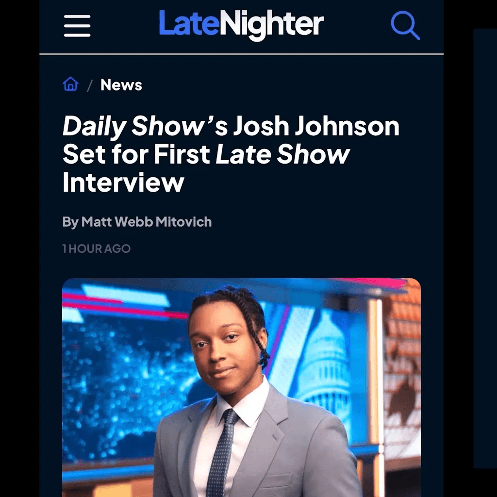 Josh Johnson2 days agoHi Friends, I wanted to share this with you a little early. I’ll be a guest on @ColbertLateShow this Wednesday. First time being interviewed on the show. To be a guest weeks before the show comes to an end feels really special. Thank you for being part of the reason this is happening.