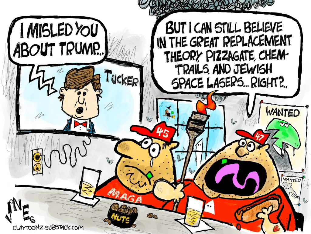 Tucker is just one of several right-wing goons who have gone from being full-fledged MAGAts to personal enemies of Donald Trump. They include not just Tucker, but Marjorie Taylor Greene, Alex Jones, Megyn Kelly, and Candace Owens. (snip-MORE)