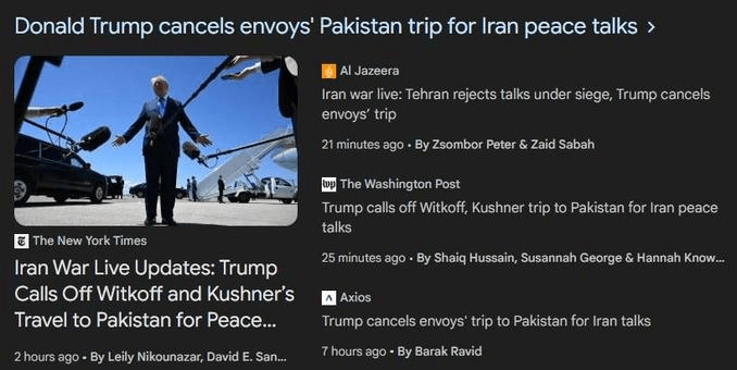 The media won’t be discussing how much closer the Trump-caused global energy shock has become because Iran has no use for whatever Kushner and Witkoff were going to present — or for them as negotiators having been burned by them before.