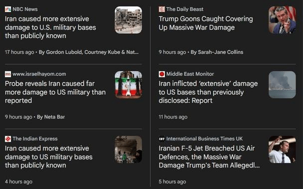 Meanwhile, stories like the coverup of damage to US military positions and assets by Iran have already been knocked completely out of the way. This topic: