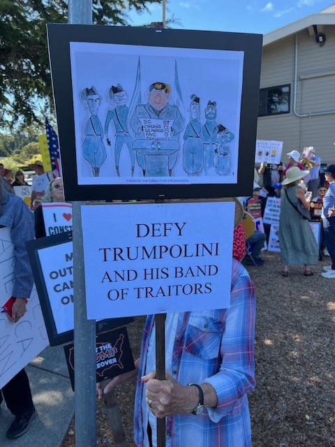 A reader sent me this photo of a poster he created for an anti-Trump rally (He asked for permission. Thank you). I love it when you all use my work to protest… just please send me a photo and no revisions, like changing any text.