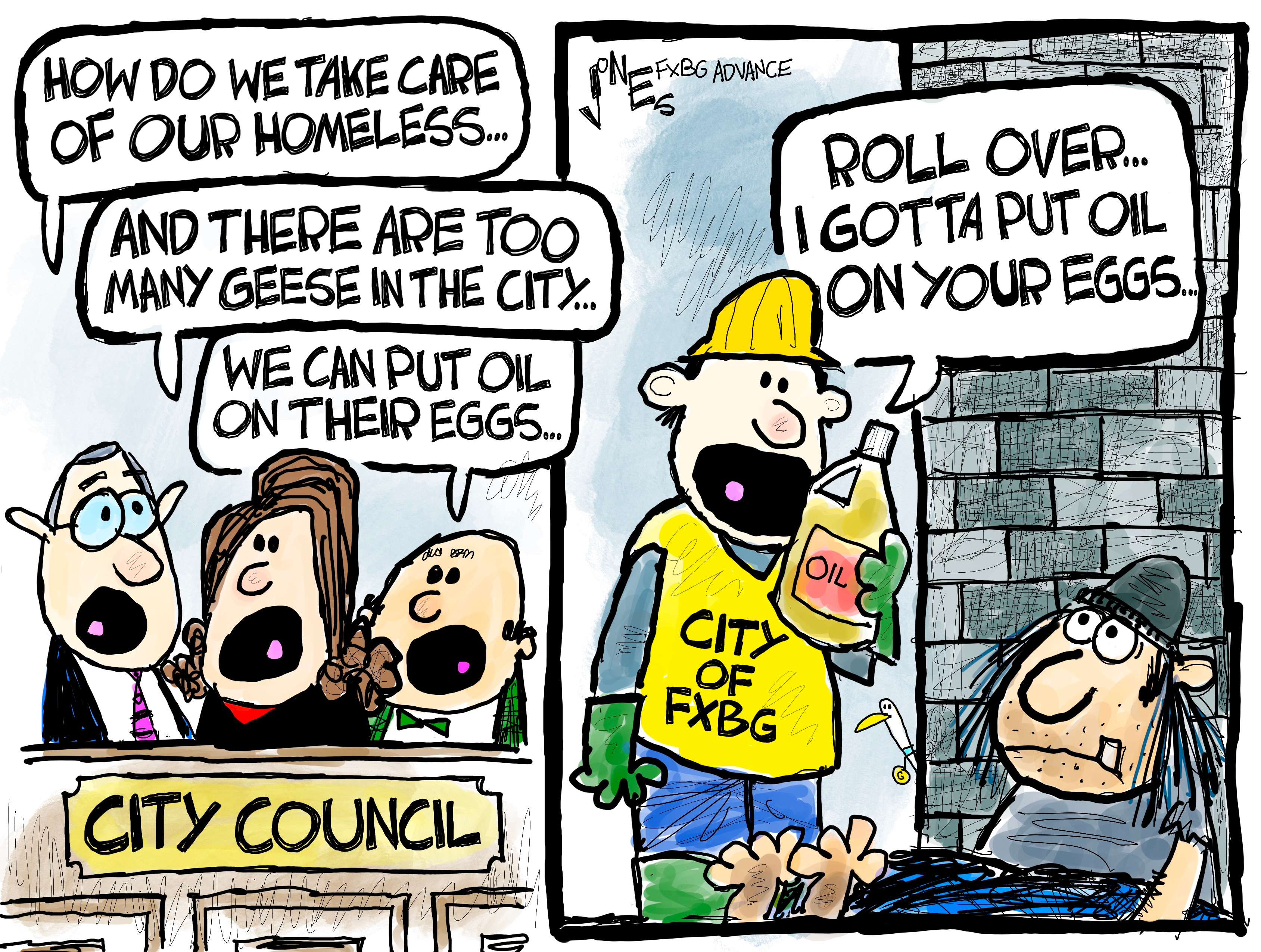 The Advance prides itself on attracting superior talent to our pages, and Clay Jones may well be at the top of the totem pole if awards are the measure. In 2022 he won the Robert F. Kennedy Award, and he has been a finalist for the Herblock Prize. What makes a great political cartoonist? Thatβs tough to say, but certainly the ability to make connections that others miss, and that force us to both laugh and think about issues in ways we may not have previously imagined β even (perhaps especially) when it makes us uncomfortable. Thatβs precisely what Jones has accomplished today, building off this weekβs seemingly unrelated stories about geese and the endless struggle in our community over the homeless.