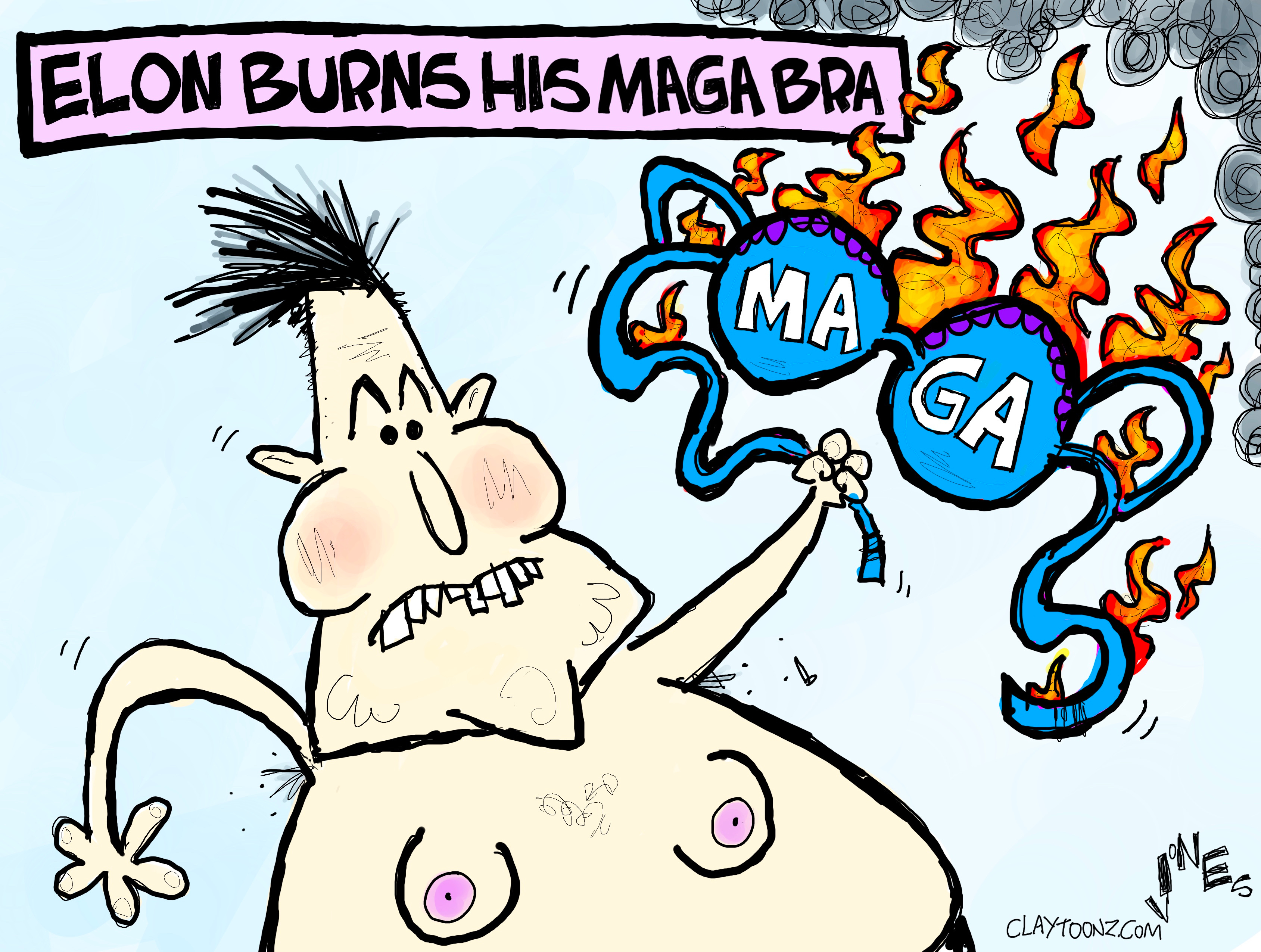 Who could have predicted that this love affair between two narcissistic, stubborn, racist, bullheaded billionaires was going to collapse in such sensational fashion? Everyone who is not a MAGAt. So, how did this start? Elon called the βOne Big Beautiful Bill,β calling it a βdisgusting abomination.β I guess he felt free to say that after he βleftβ DOGE to re-focus on his businesses. What does Stephen Millerβs wife think of all this? Who wants to hear that pillow talk? (snip-MORE)