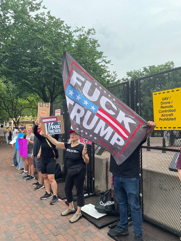 The closest thing I saw to violence was when a woman took a wild swing at a man holding a sign. They crossed paths, and she took a swing as they passed each other, which I donβt think she intended to connect. But he turned around and said, βDid you just take a swing at me?β She did not turn around, so he yelled, βFuck Trump.β Yes, she was a MAGAt. And no, the man didnβt try to do anything violent. He kept on his way after yelling, βFuck Trump.β