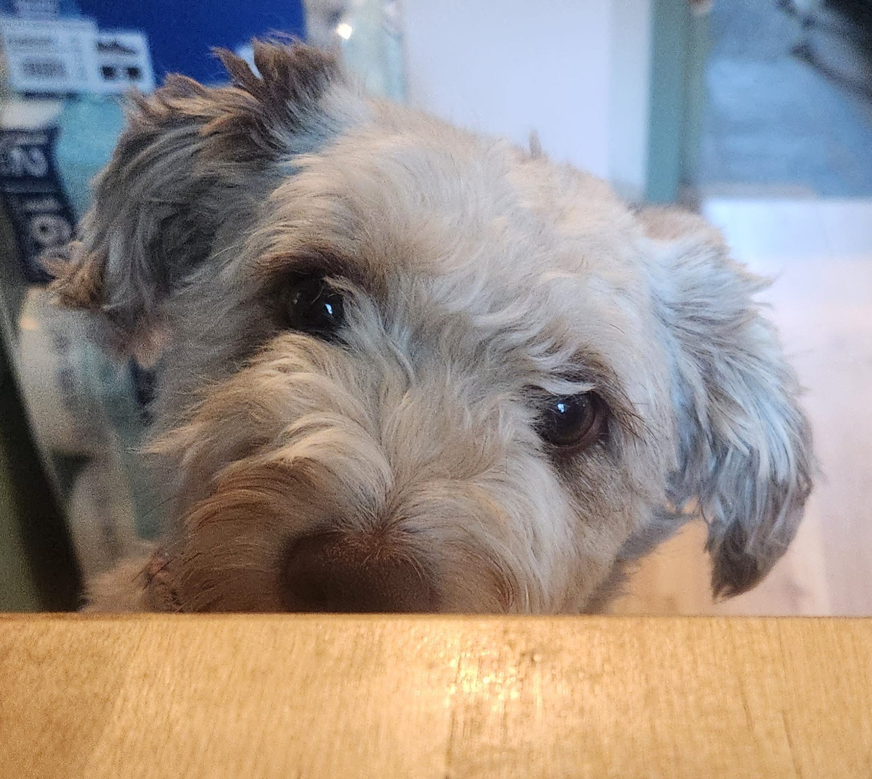 Of course I’m not including Pekes, And such fantastic canine freaks. The usual Dog about the Town Is much inclined to play the clown, And far from showing too much pride Is frequently undignified. He’s very easily taken in — Just chuck him underneath the chin Or slap his back or shake his paw, And he will gambol and guffaw. He’s such an easy-going lout, He’ll answer any hail or shout.