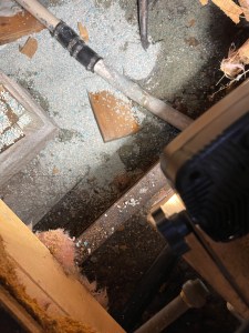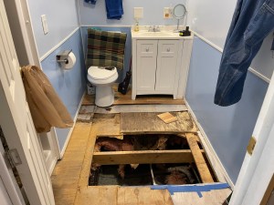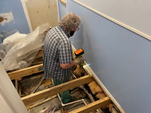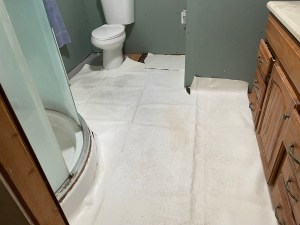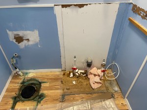So while we had everything removed except the shower I spend a lot of time convincing him that hey, if we shifted this there and that here and did this … we could have the bathroom of our dreams we originally planned on. Took a while. About two hours until he came back to me and said enthusiastically … YES, that is a great idea. But Scottie the work and effort. He told me he remembered how it was so hard for him and I to force that current shower into the room and twist it to the point it would fall into where it needed to be. I was not so disabled then and he was much younger.