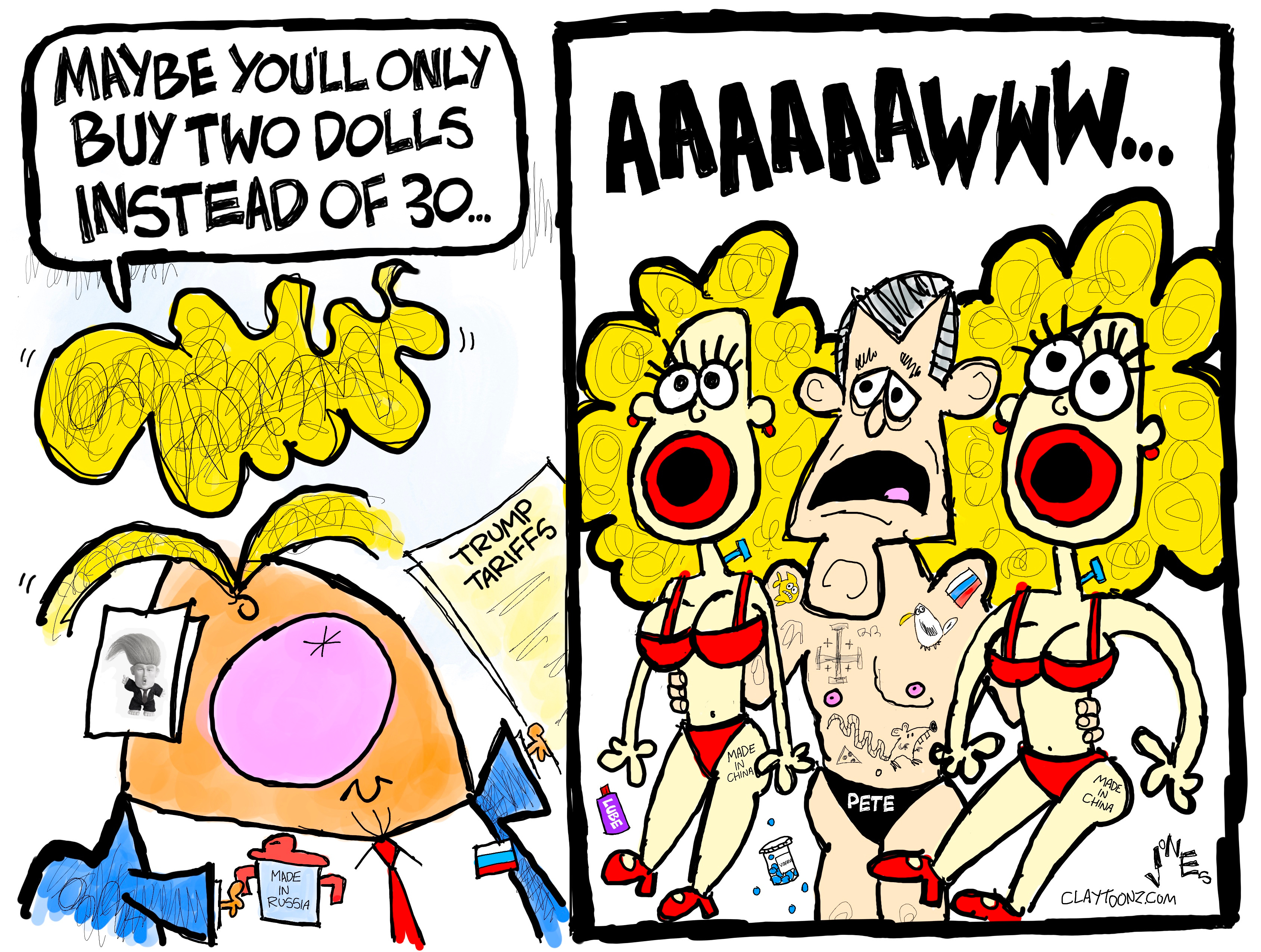 Last Wednesday, Trump predicted during a Cabinet meeting (where everyone was required to praise him while Gulf-of-America caps were aligned across the table) that higher prices caused by tariffs will mean “children will have two dolls instead of 30 dolls.”