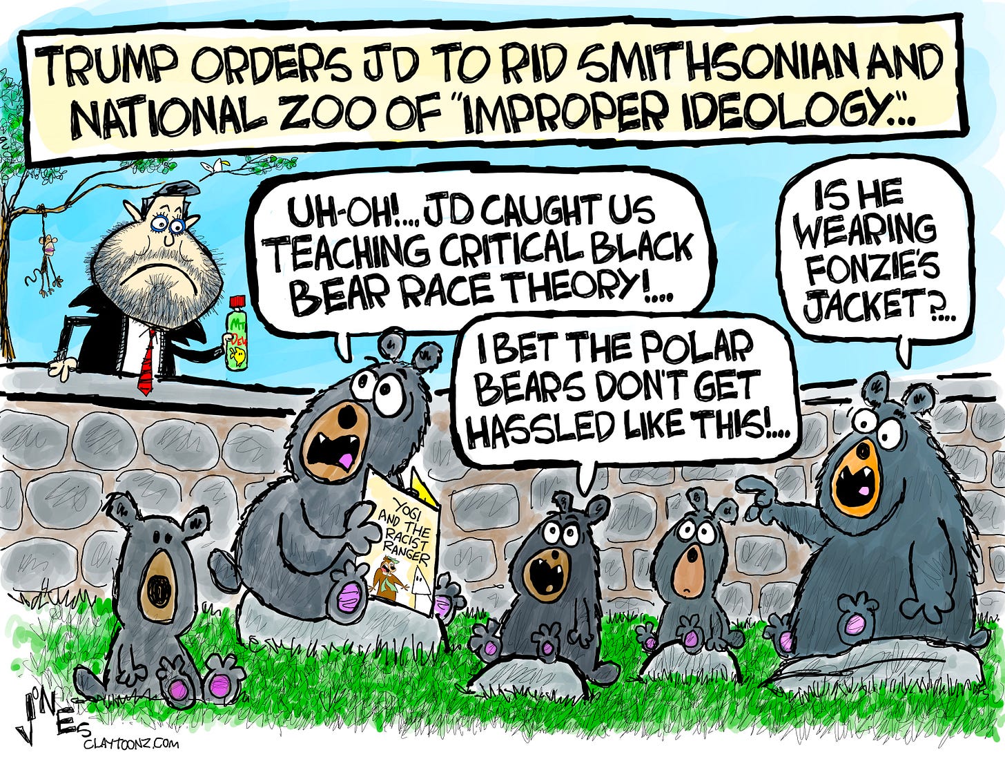 And what is “improper” ideology at the zoo? Are the zebras more Black than White? Are the Giant Pandas too Chinese? Are the Black bears getting preferential treatment over the polar bears? Do we need to deport the Brown bears to El Salvador? Maybe JD will remove all the animals that have exhibited gay behavior, which would include lions, bats, giraffes, bonobos, penguins, macaques, flamingos (obviously), lizards, gulls, and the mascot of the Republican Party, elephants, except they don’t stay in the closet and lie about it.