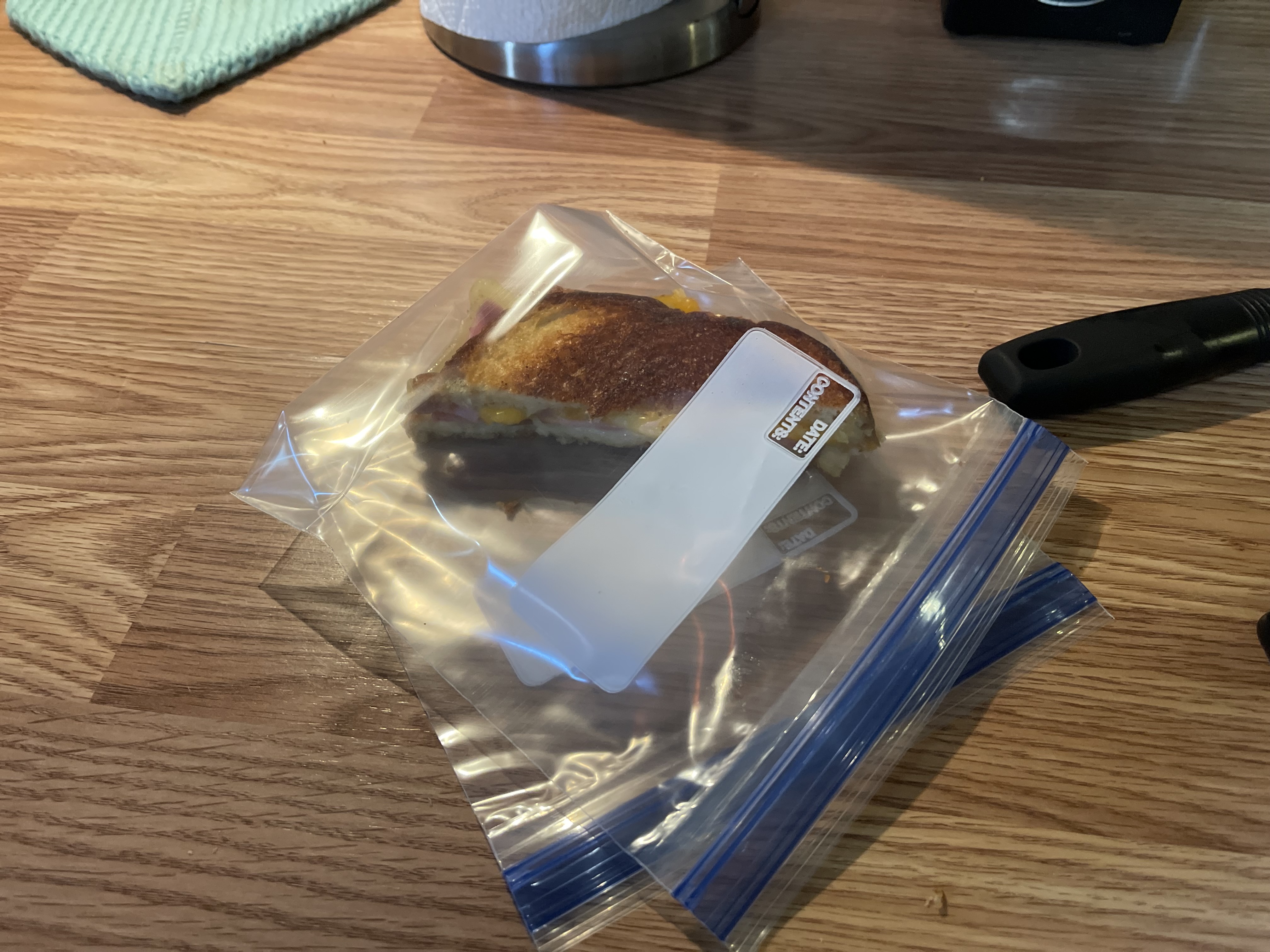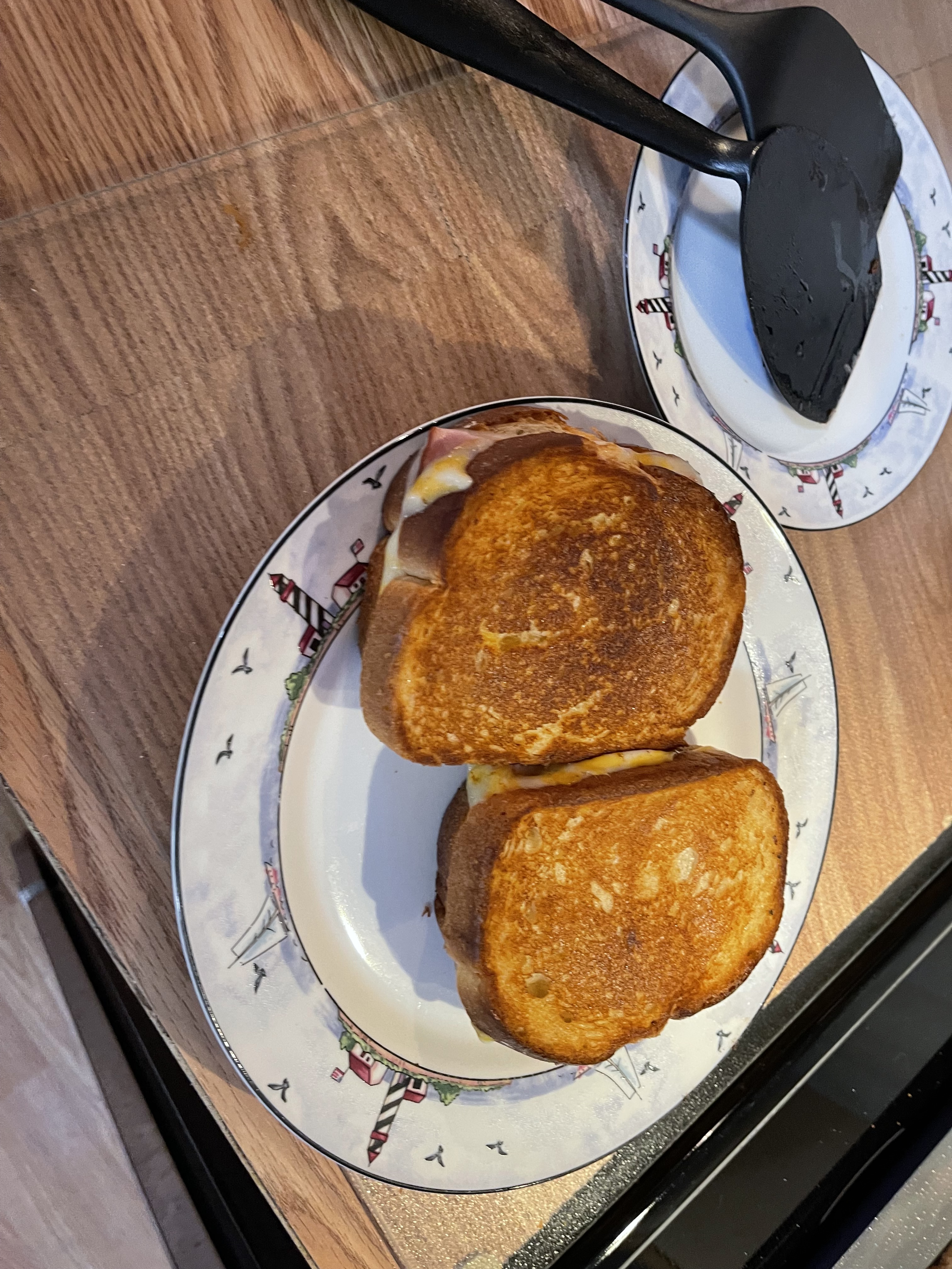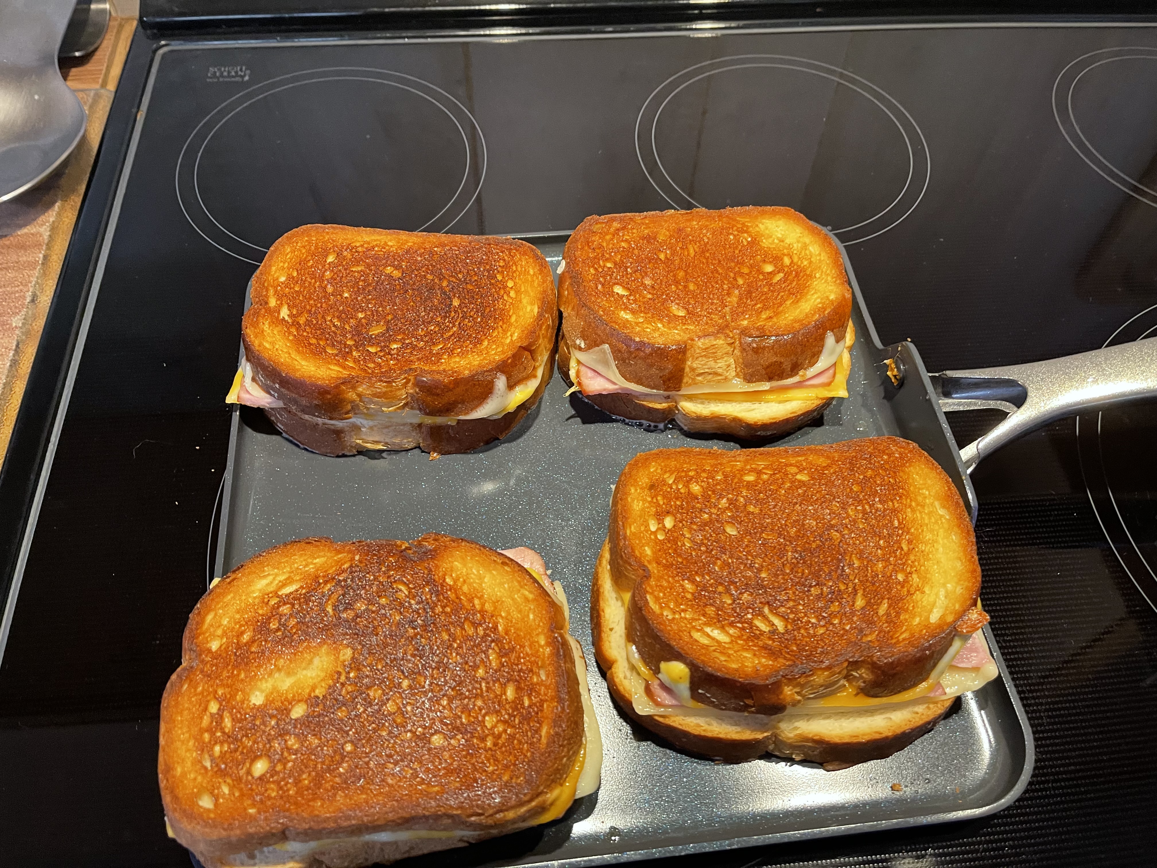 I used two different cheeses on on each side of the bread. Swiss and the other side colby Jack. Then two slices of ham.