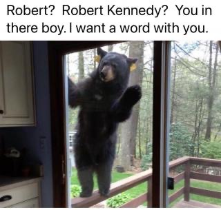 I wanted to see what they were up to because they were being pretty noisy but there wasn’t many of them. When I walked up, they all started laughing and started shouting something about the bear. What bear? I had momentarily forgotten about RFK Jr’s confessions of dumping a bear carcass in Central Park. I had also forgotten I was wearing a Taylor guitar shirt with a bear on it. And for some reason, one of the RFK Jr people, a crazy lady, had decided I was someone important enough to be lobbied.