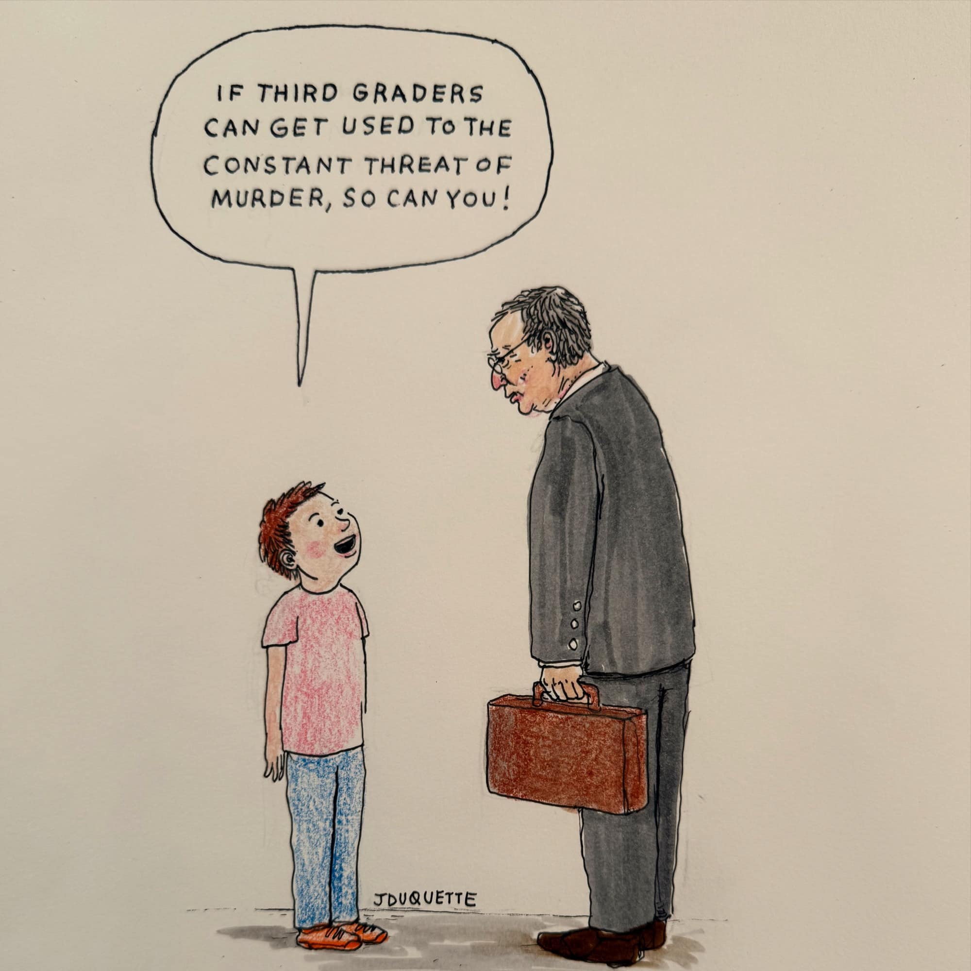 Creative note: My buddy and fellow cartoonist Lalo Alcaraz is also in Chicago for the convention, except he gets to go inside (fucker). We were talking this morning and he asked if I added a dateline to my cartoons from Milwaukee which reminded me that I had to do that for my Chicago cartoons. Thanks, Lalo. Proofreader Laura also brought it up a bit later.
