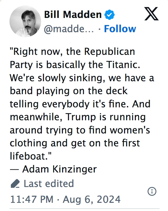 I didn’t engage because I didn’t want a conversation with him. Trumpers are often like Libertarians and RFK Jr fuckers. They want to talk to you, they don’t want to stop talking to you, and they try to convert you. They’re worse than Hairy Krishners.