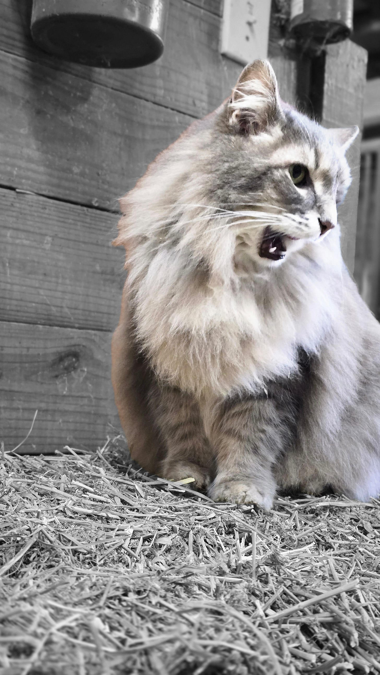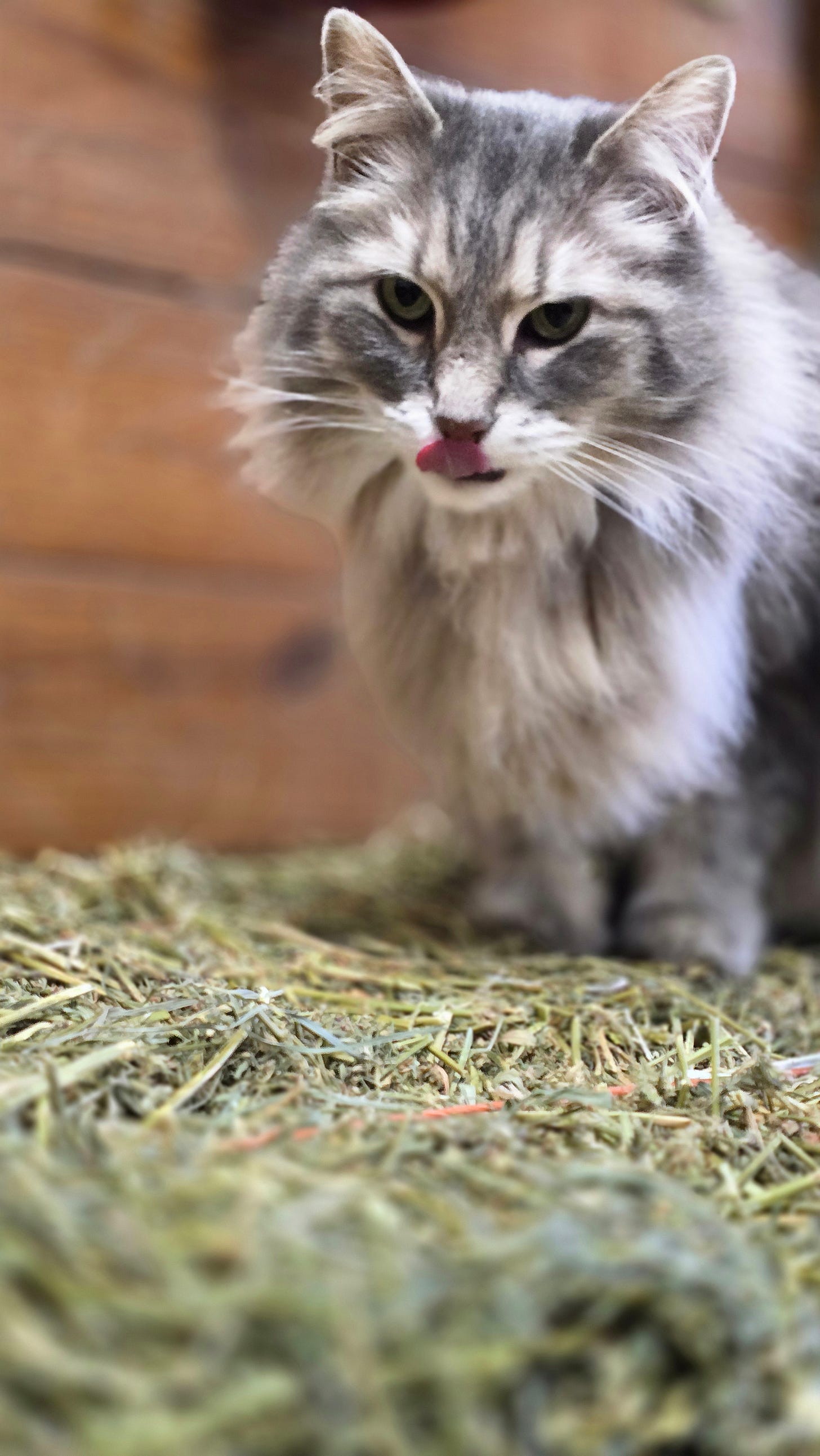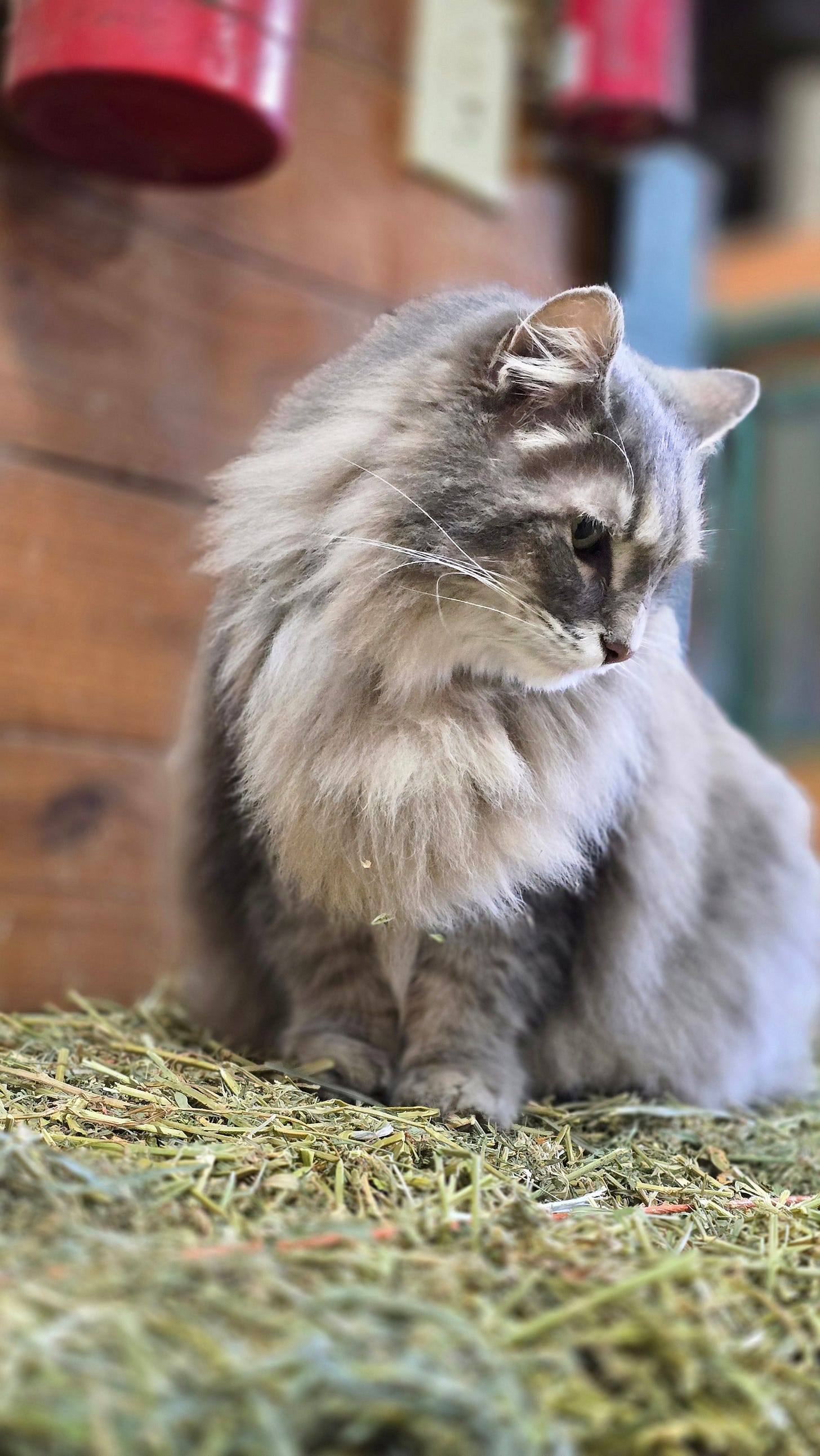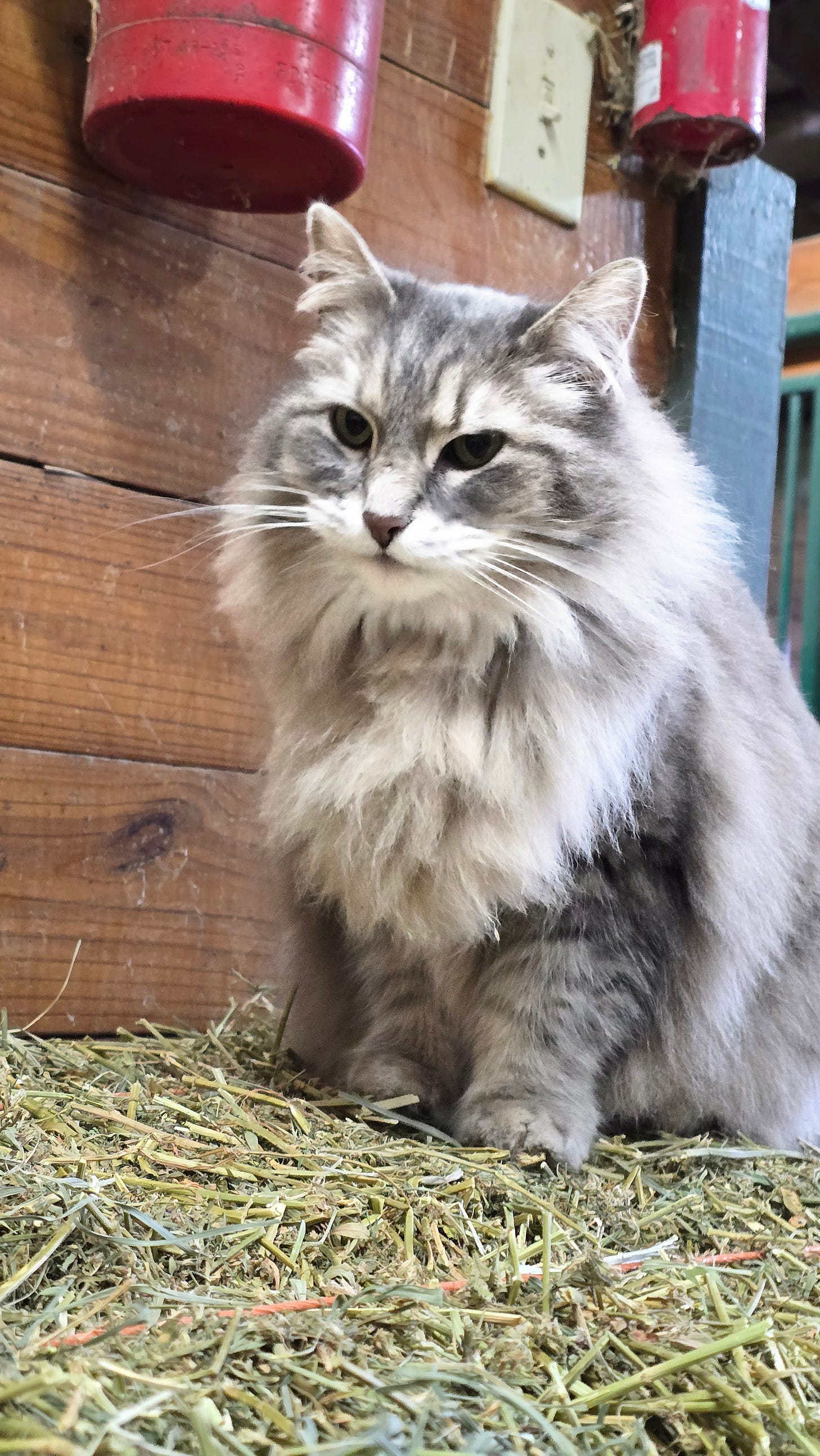 Barncat ! I tempted her up on a hay bale with some treats. Great place to take a picture.