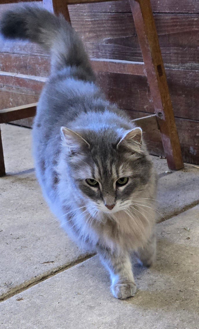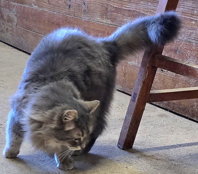 Barncat came down from the hayloft.