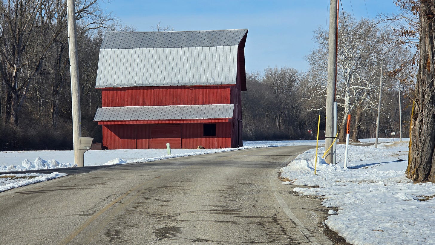 On the way out to feed the horse – if Hopper has painted Ohio barns.